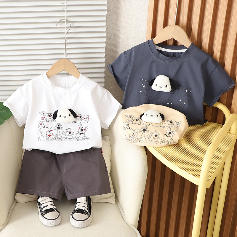 어린이 반팔 세트 소년 티셔츠 아기 여름 아동 의류 소녀 반바지 아기 옷 여름 의류 도매