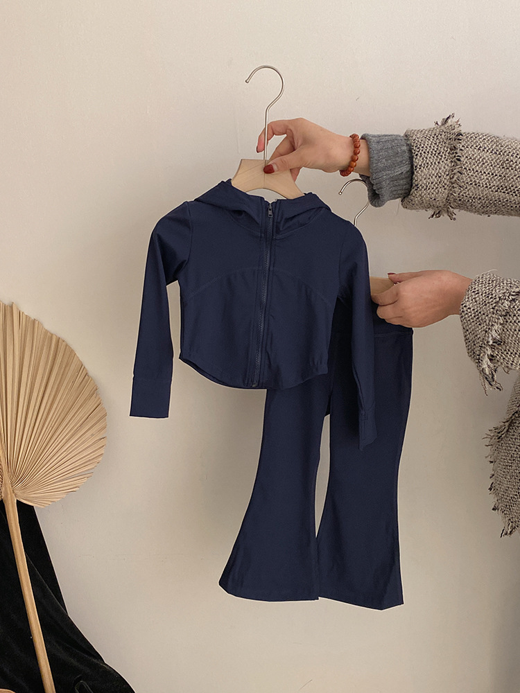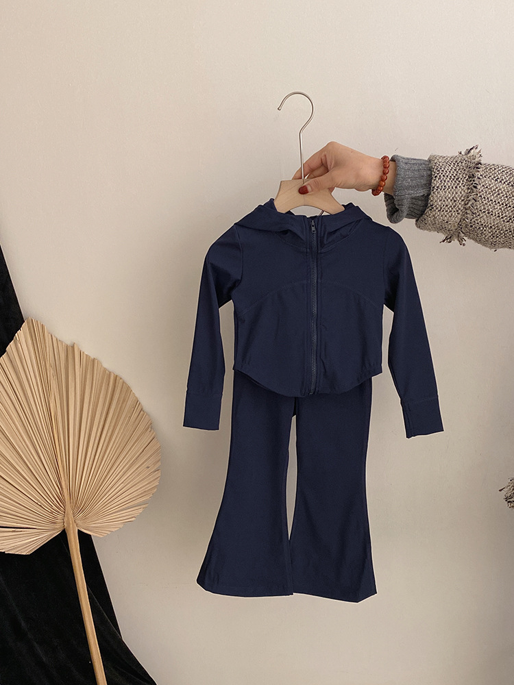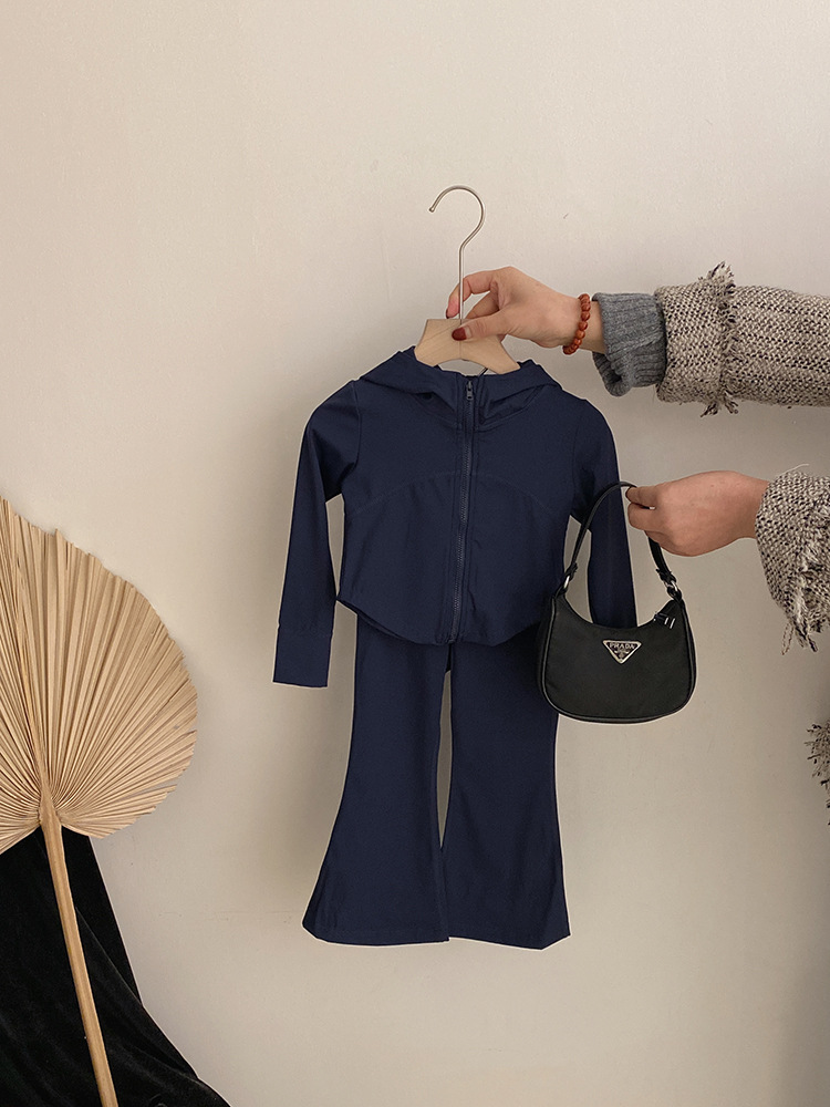봄 새로운 한국 스타일 소녀 패션 올 매치 후드 자켓 2025 세련된 플라 바지 스포츠 트렌디 한 세트