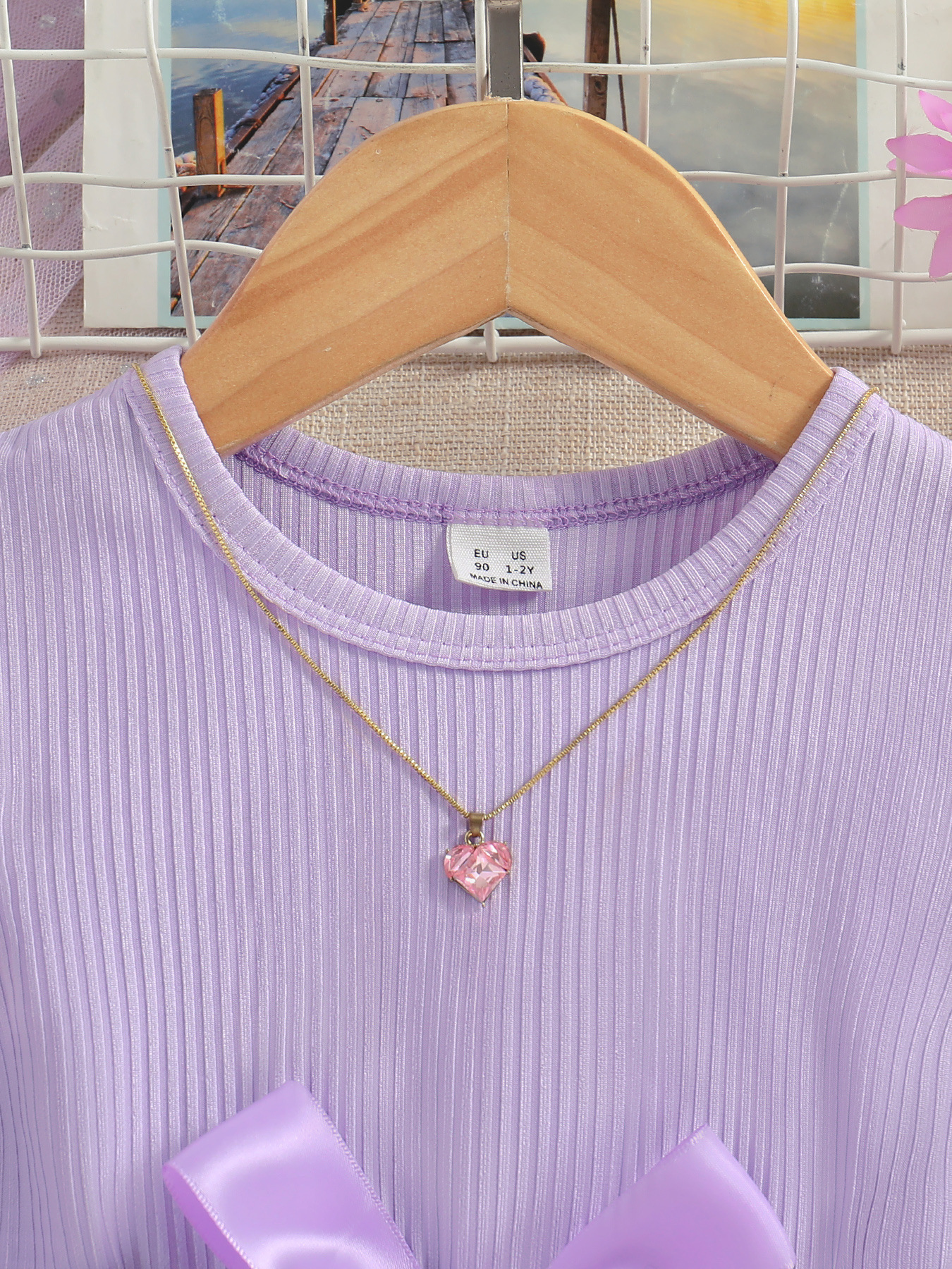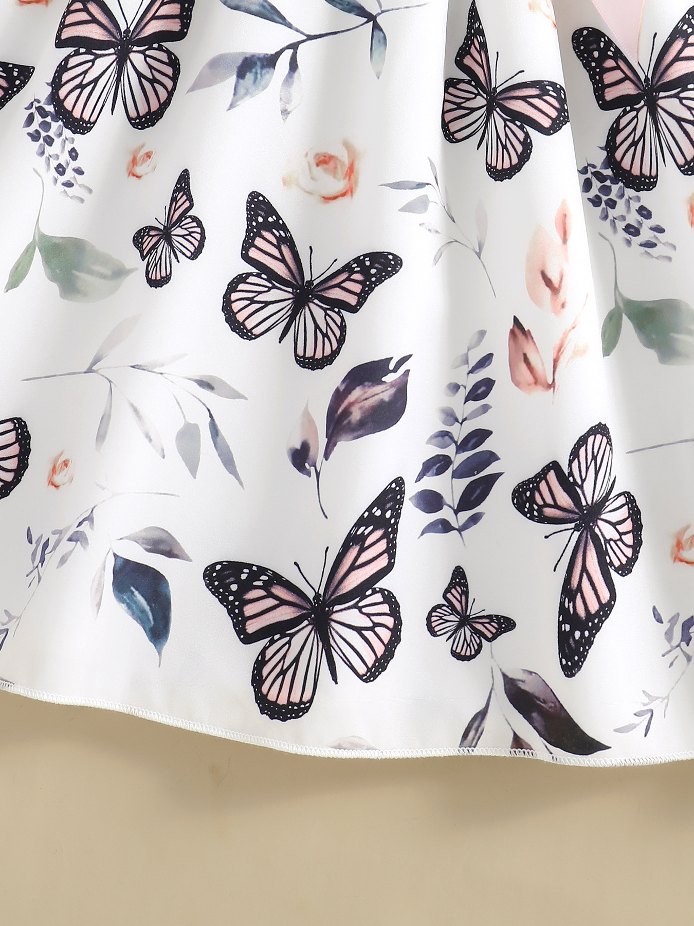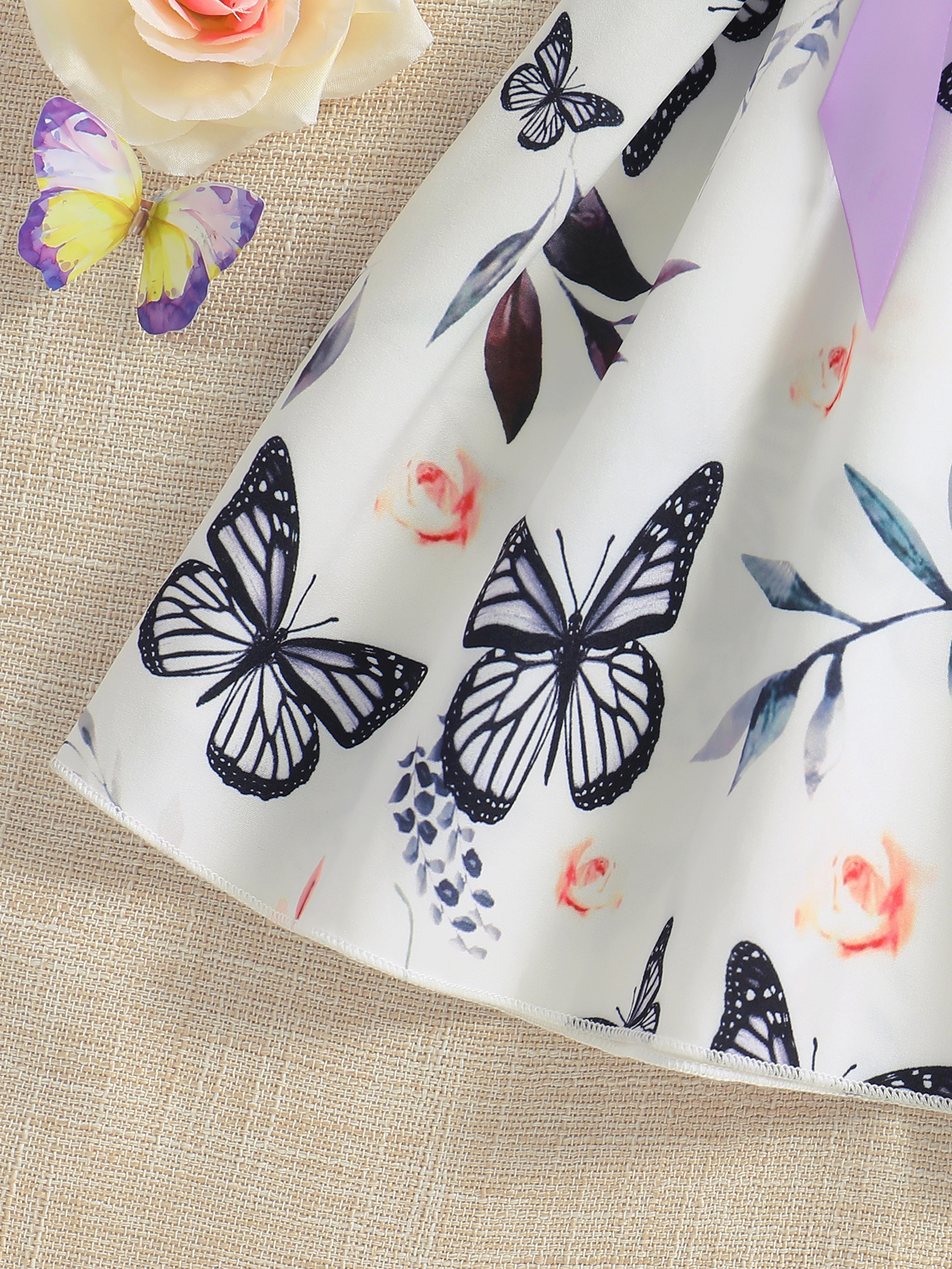 쇼피파이 해외 직구 유럽 및 미국 여아용 라운드넥 플라잉 슬리브 골지 공주 드레스 나비 프린트 원피스+벨트 아동복