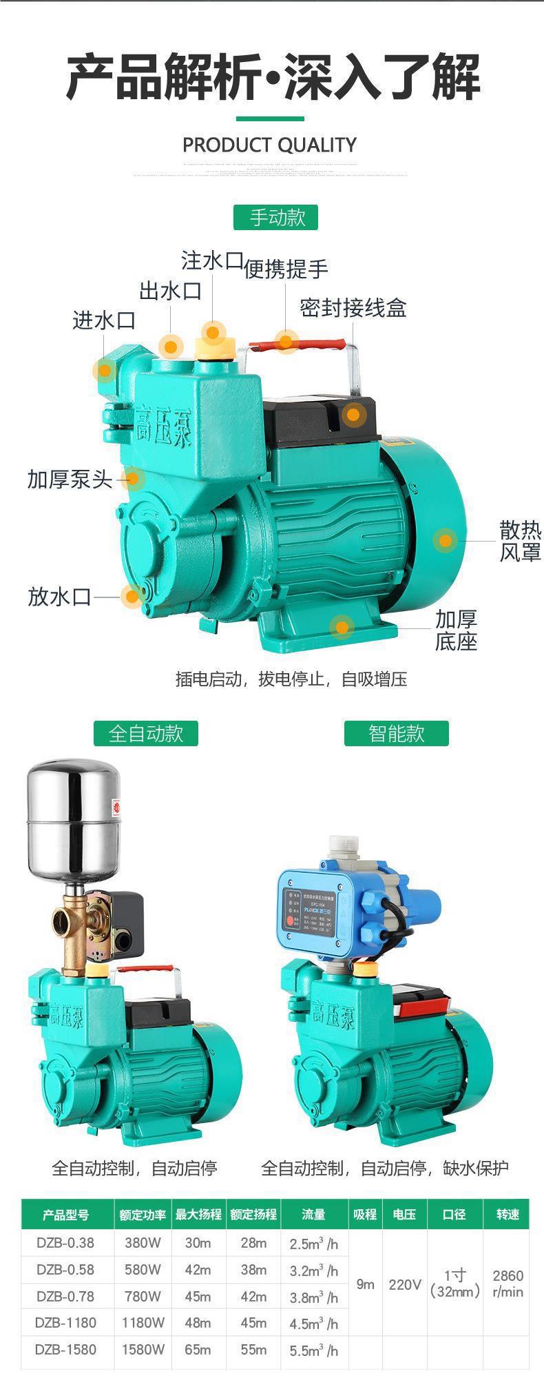 가정용 자동 자체 프라이밍 펌프 부스터 펌프 우물 펌프 순환 펌프 파이프 라인 부스터 펌프 220V 자체 프라이밍 펌프스토어 가기