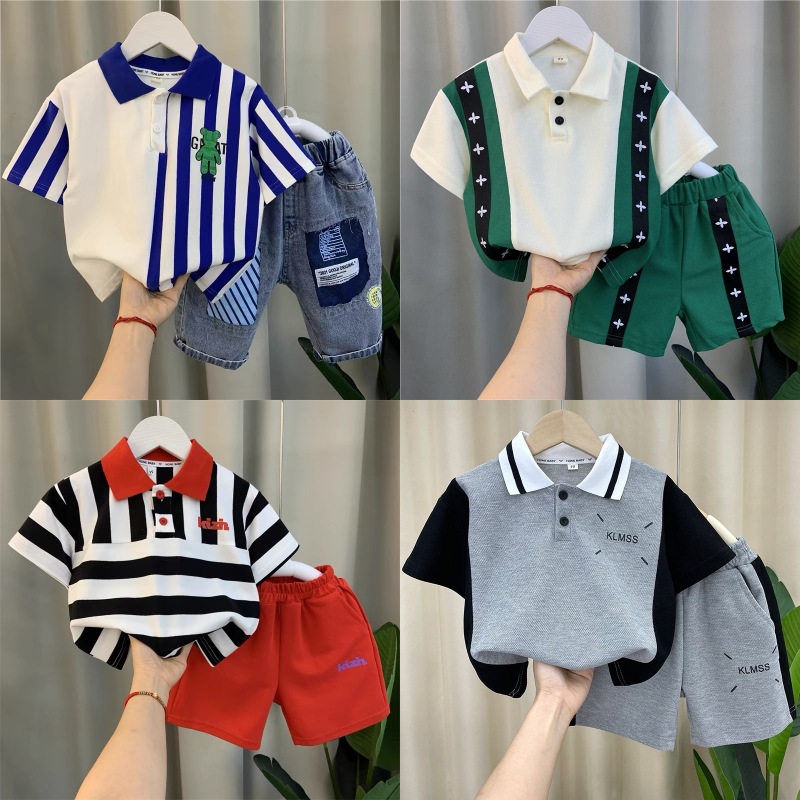 어린이 반팔 세트 2025 여름 새로운 잘 생긴 아기 여름 반팔 바지 투피스 도매 한국판스토어 가기