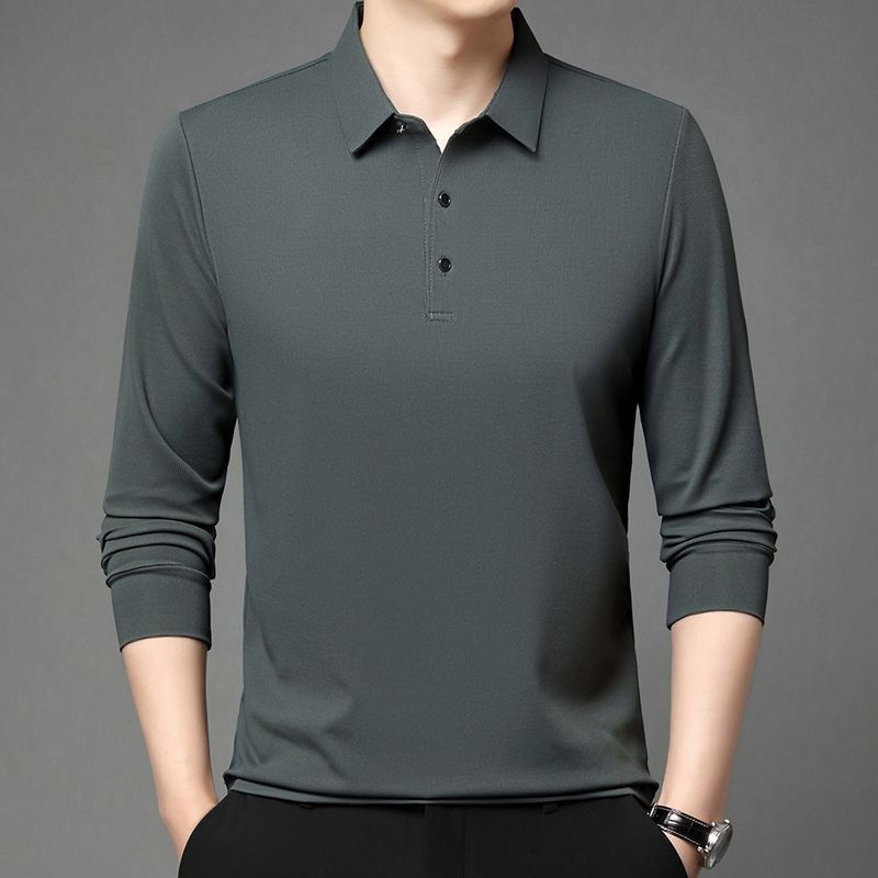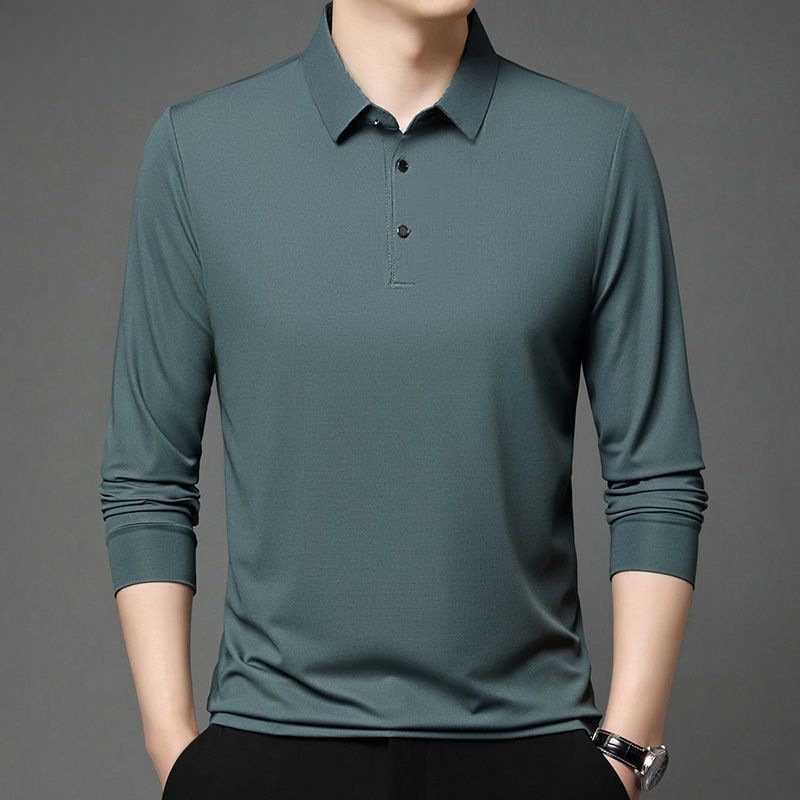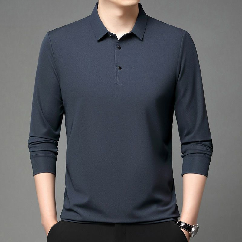 Lj 새 티셔츠 아빠 올 매치 남자 새 봄 긴 소매 캐주얼 POLO 중년 솔리드 컬러 옷깃 와이드스토어 가기