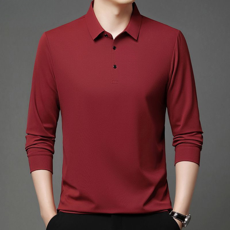 Lj 새 티셔츠 아빠 올 매치 남자 새 봄 긴 소매 캐주얼 POLO 중년 솔리드 컬러 옷깃 와이드
