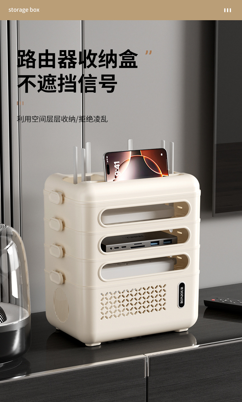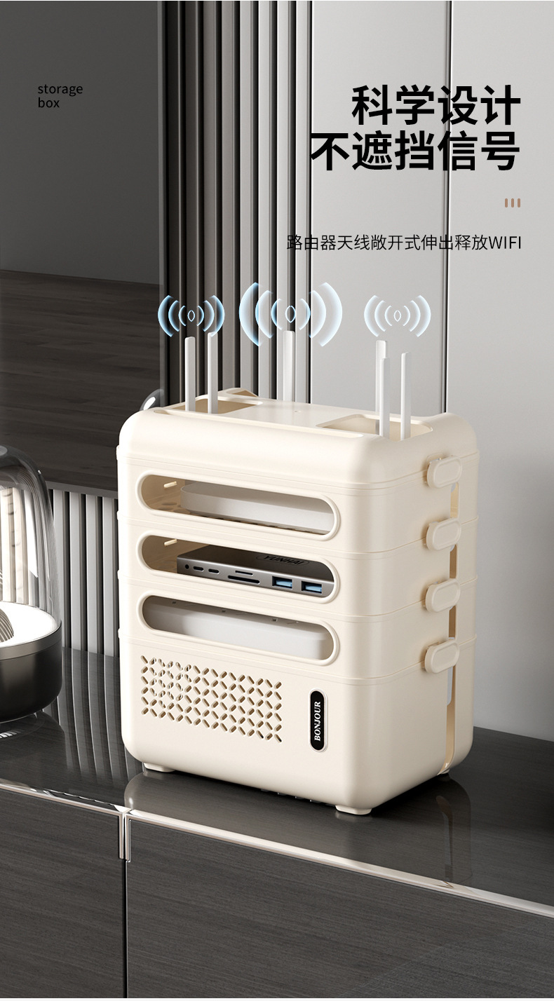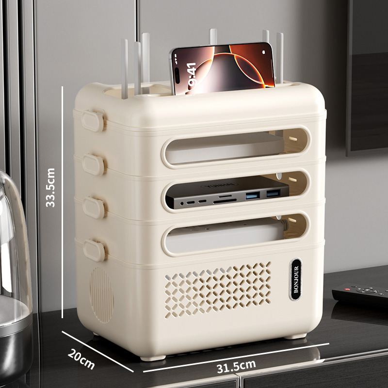 홈 와이파이 무선 라우터 저장 상자 와이어 저장 TV 셋톱 박스 다층 복고풍 스토리지 랙