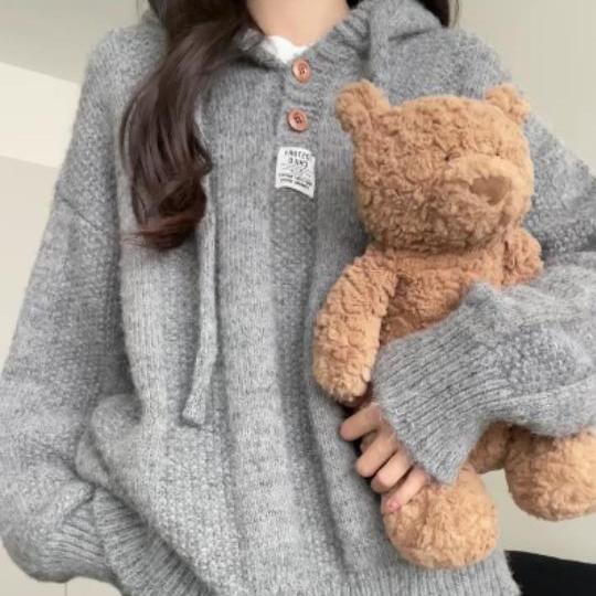 게으른 스타일의 회색 후드 스웨터 여성의 2025 년 새로운 가을과 겨울 코트 스웨터 긴팔 탑스토어 가기