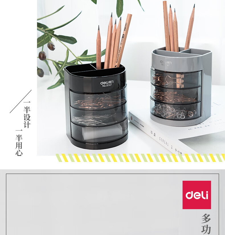 델리 3단 다기능 펜홀더 9147 데스크탑 정리함 블랙 그레이 투톤 대용량 3단 펜홀더 도매스토어 가기