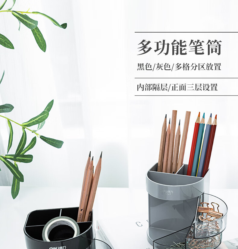 델리 3단 다기능 펜홀더 9147 데스크탑 정리함 블랙 그레이 투톤 대용량 3단 펜홀더 도매