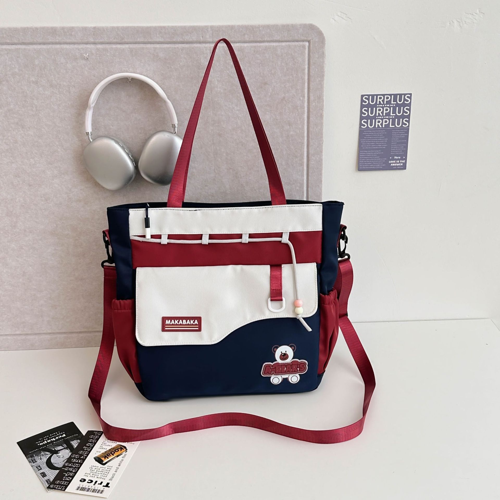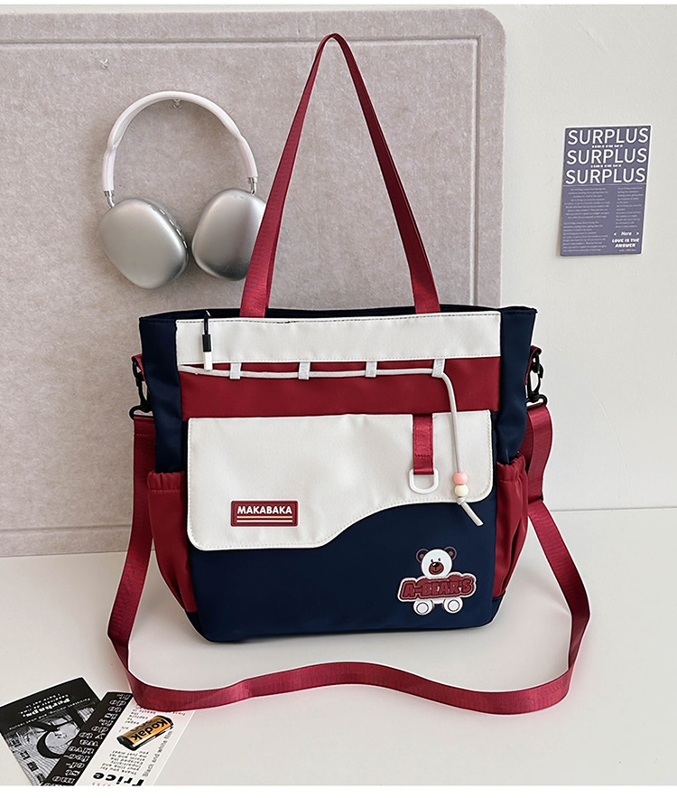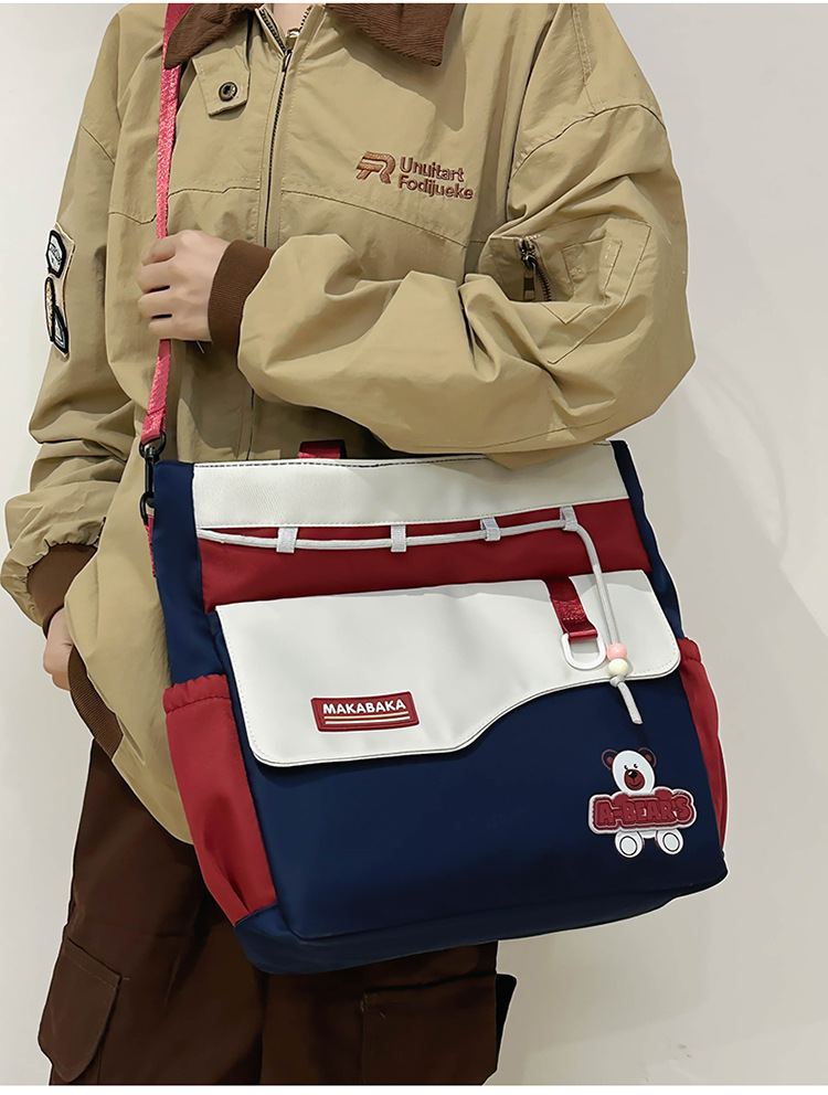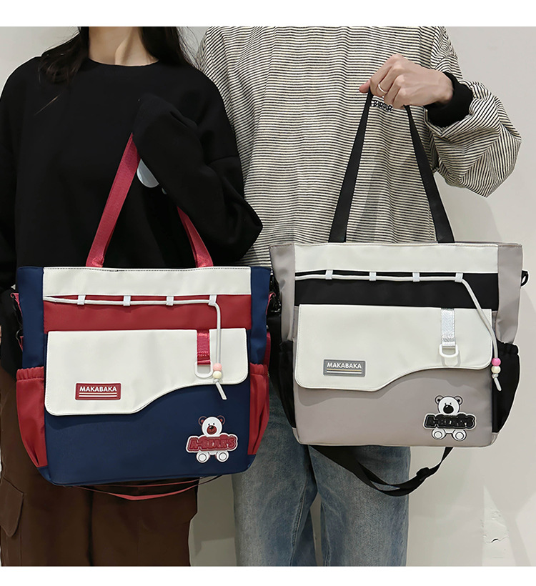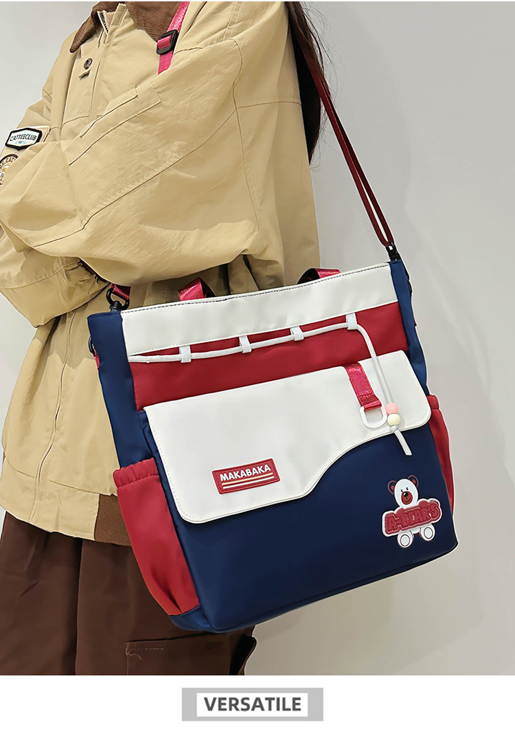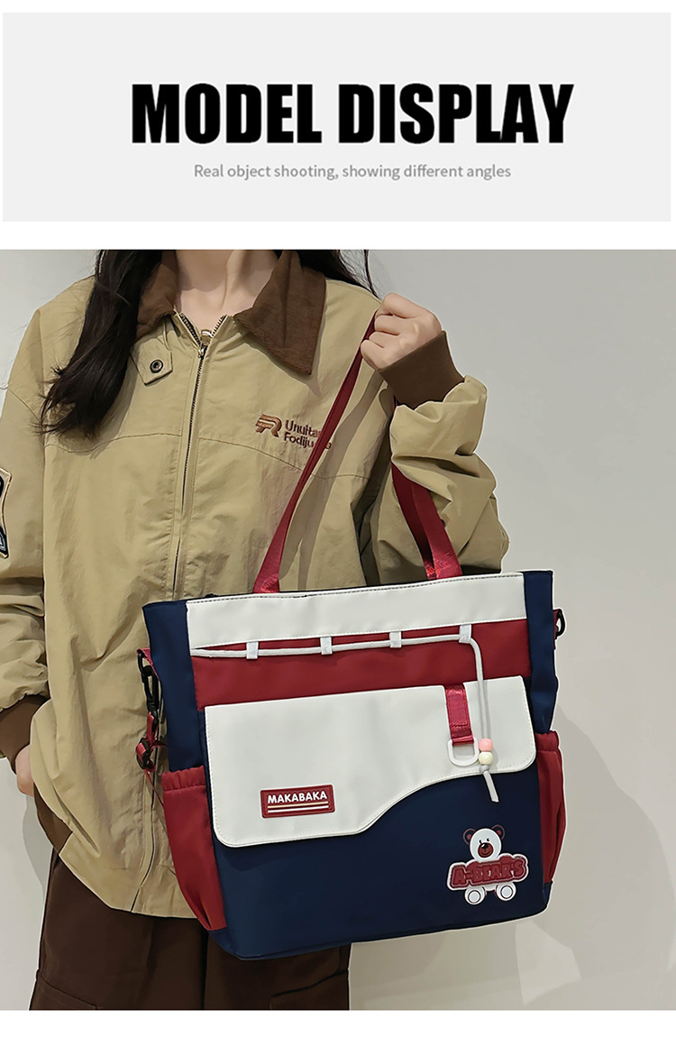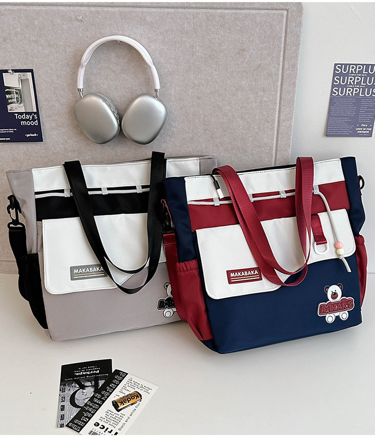 대비 색상 대용량 통근 크로스 백 일본식 레트로 인 소녀 토트 백 학생 튜터링 숄더 백스토어 가기