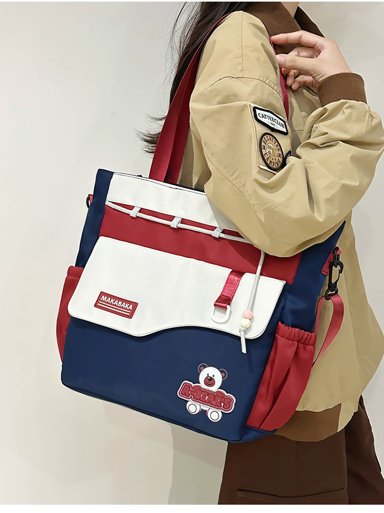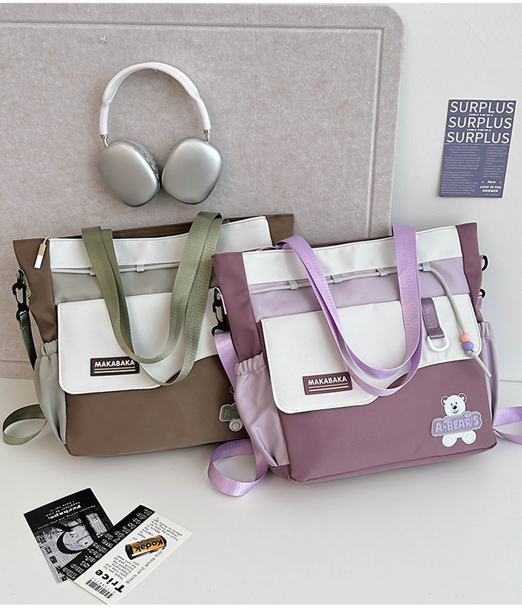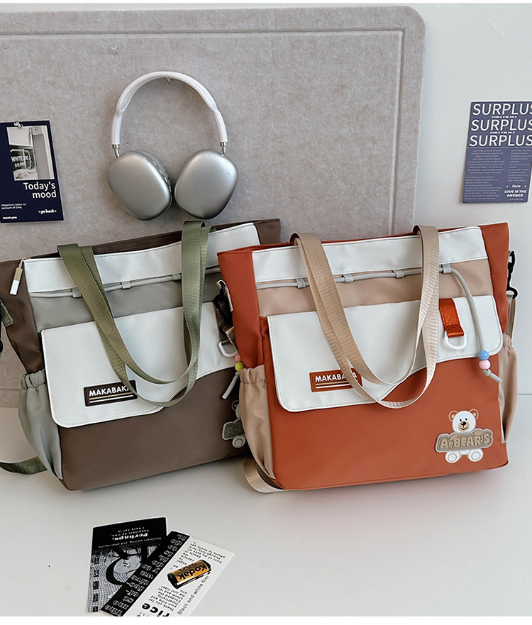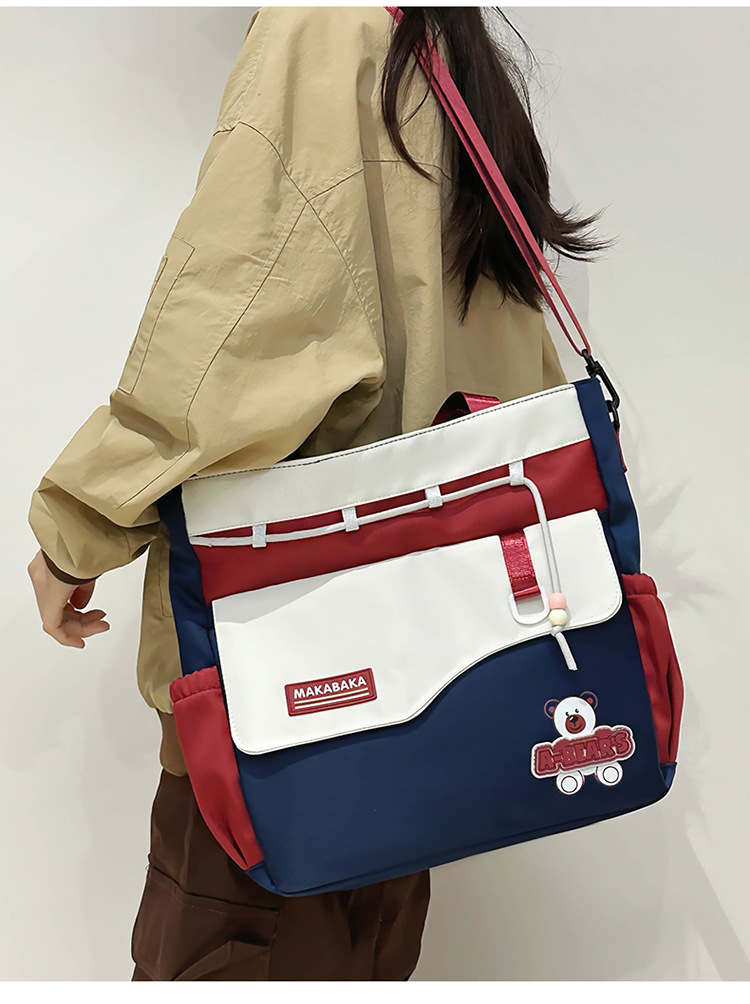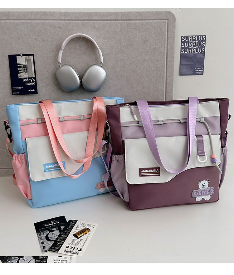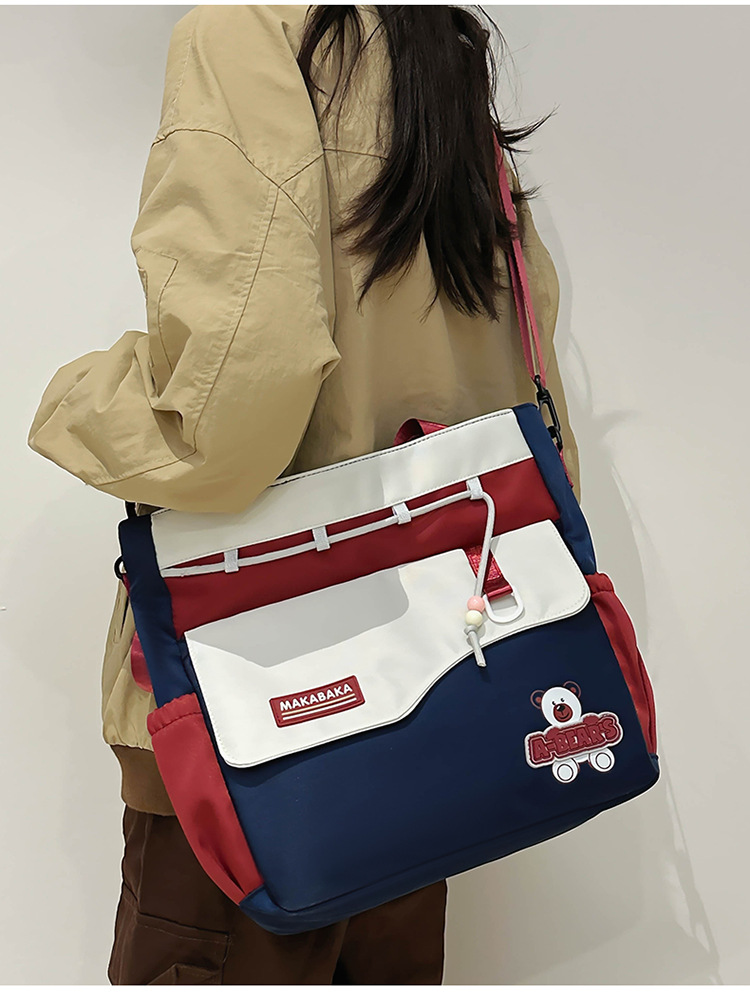 대비 색상 대용량 통근 크로스 백 일본식 레트로 인 소녀 토트 백 학생 튜터링 숄더 백스토어 가기