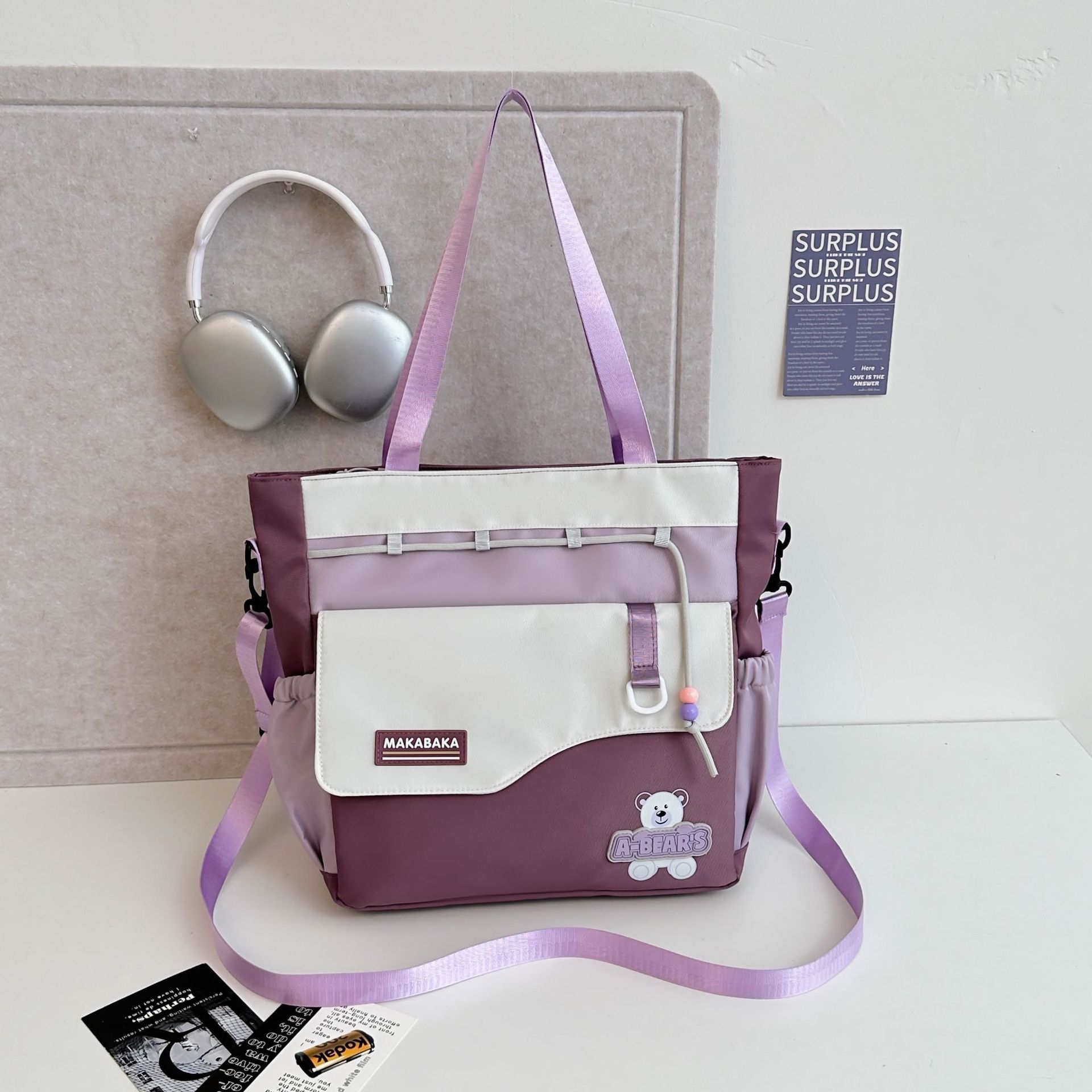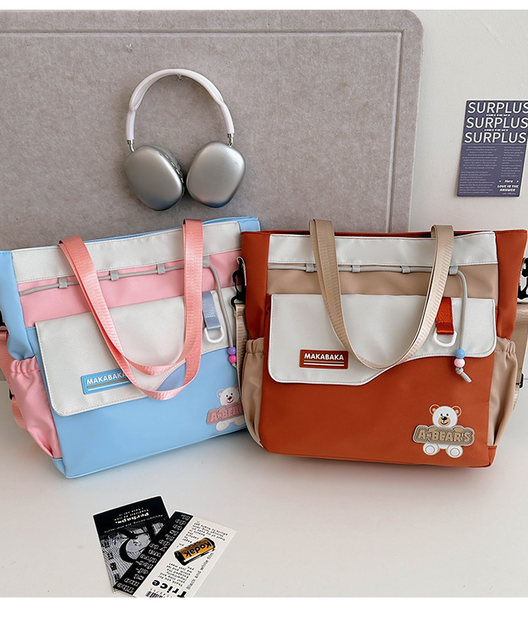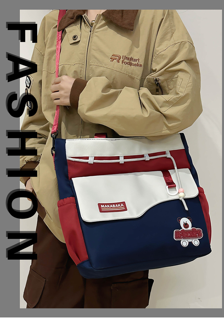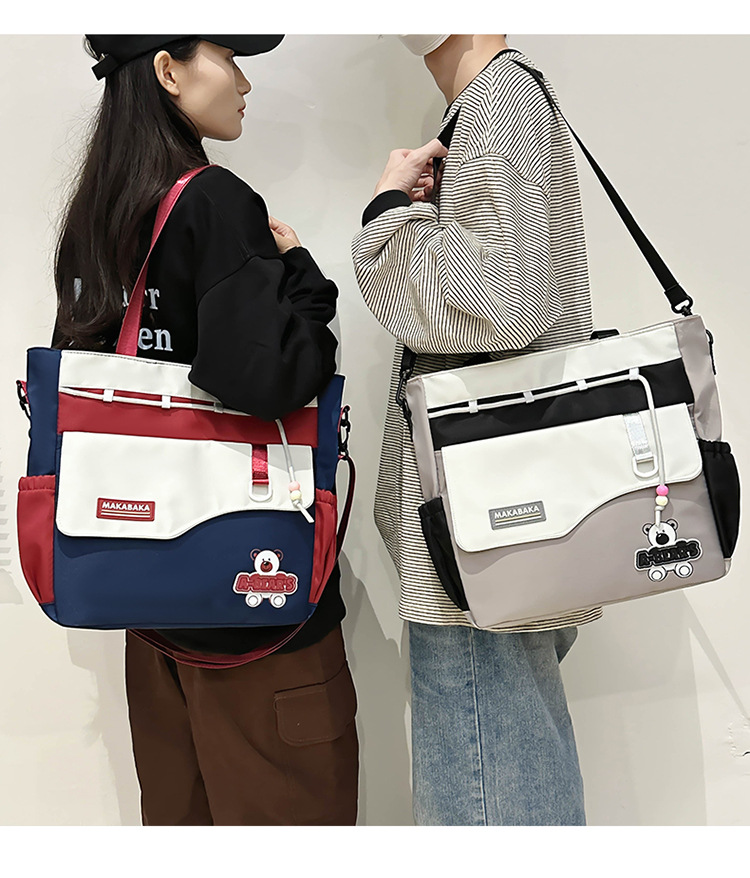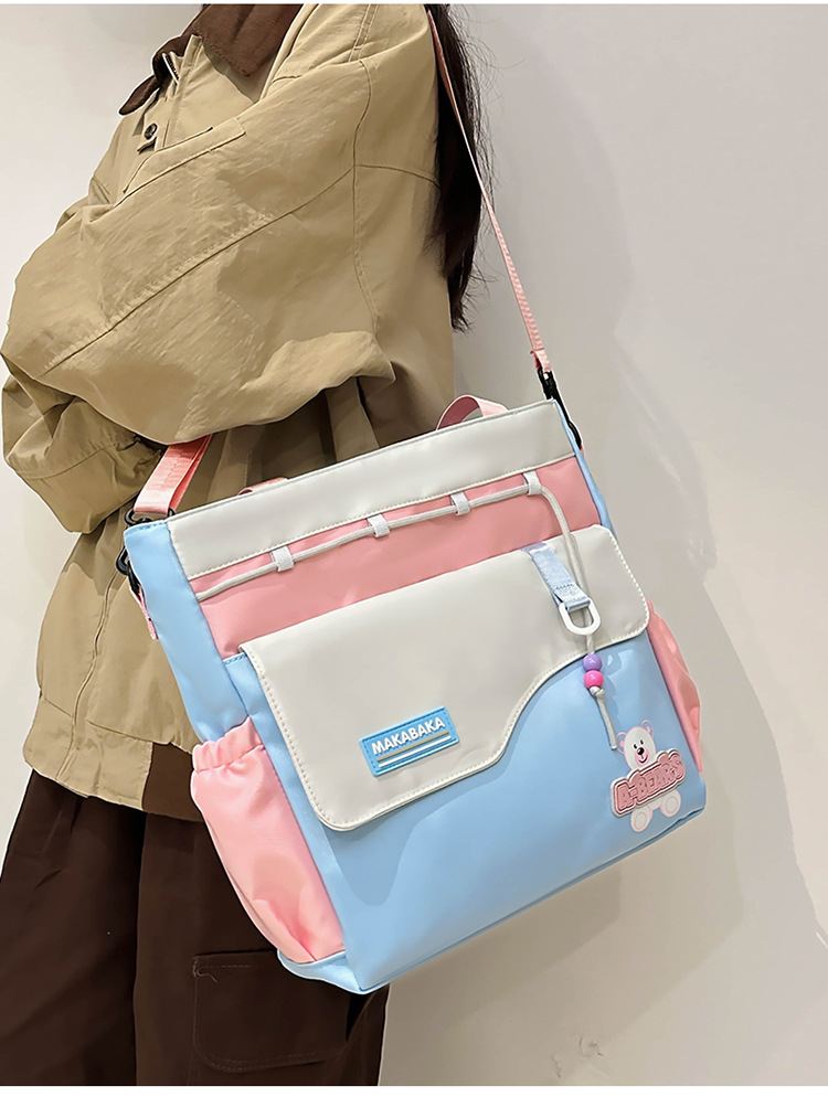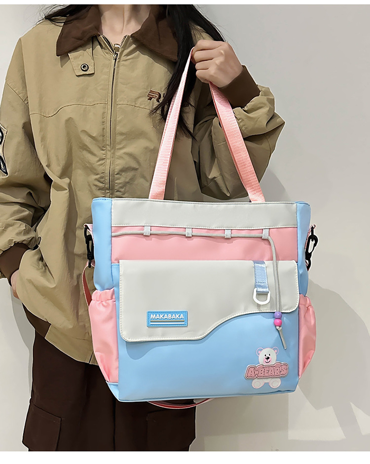 대비 색상 대용량 통근 크로스 백 일본식 레트로 인 소녀 토트 백 학생 튜터링 숄더 백스토어 가기