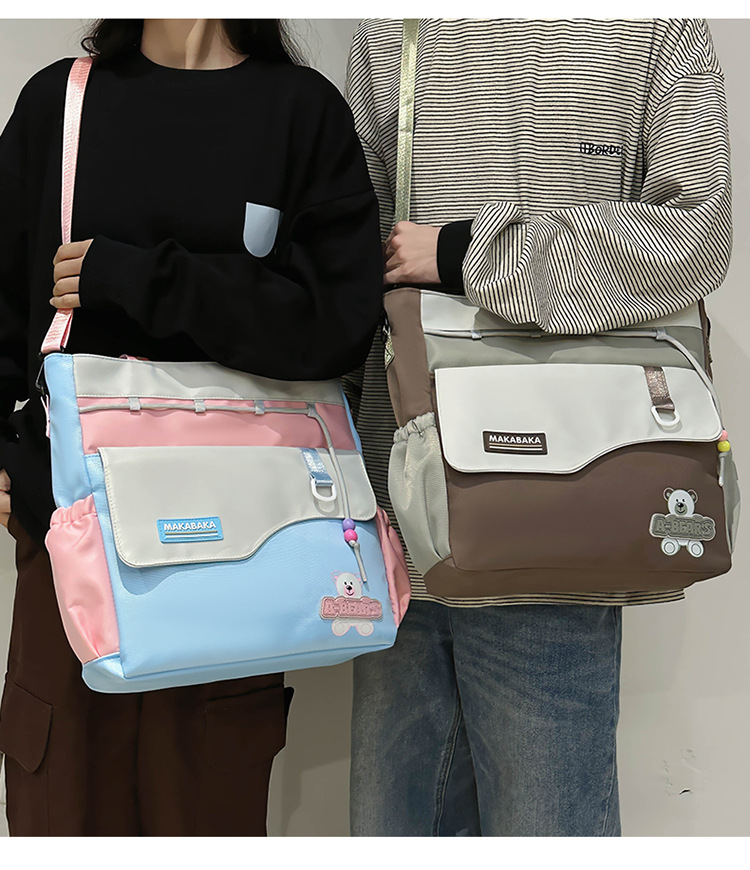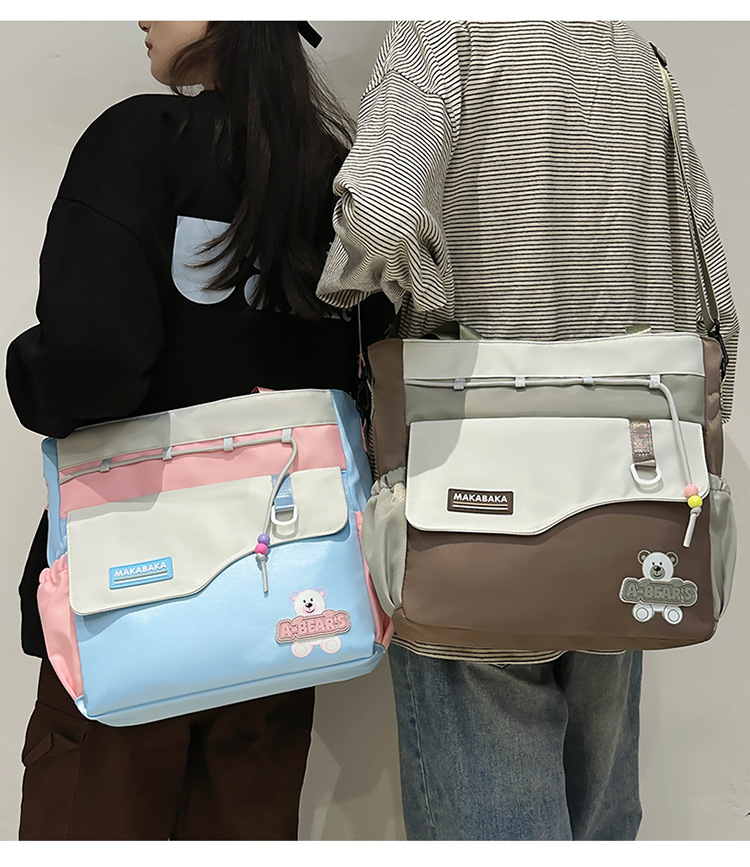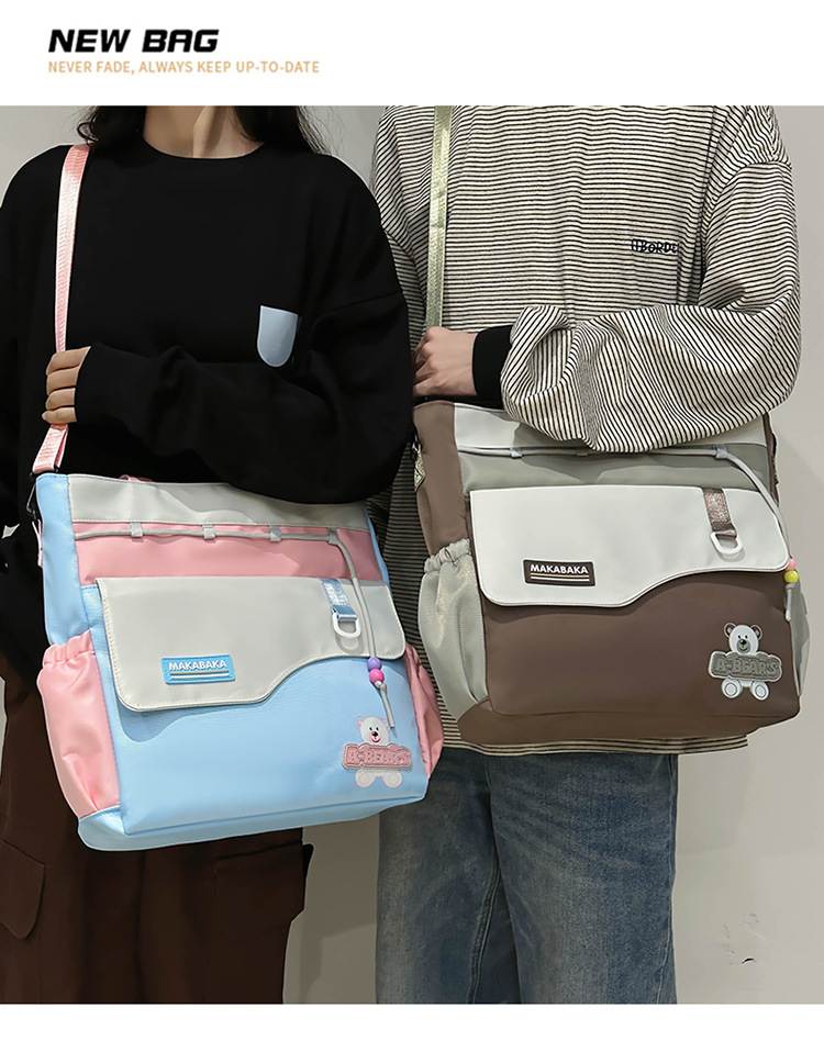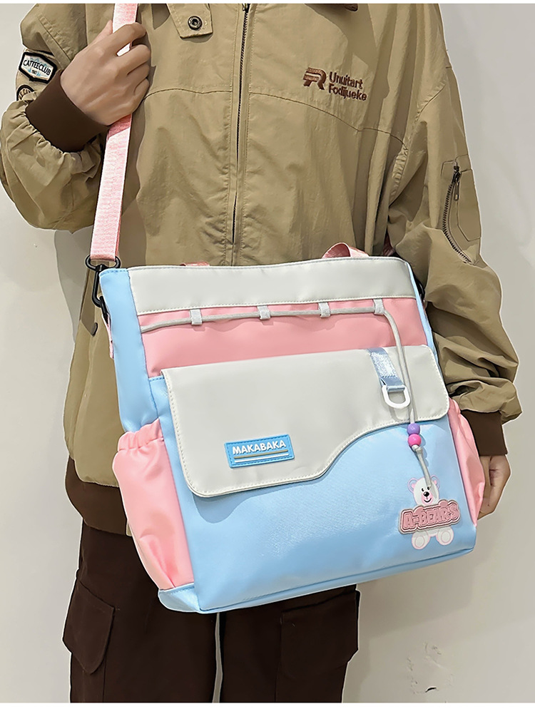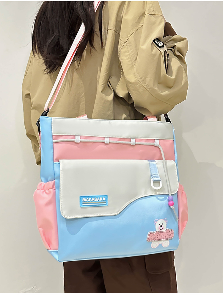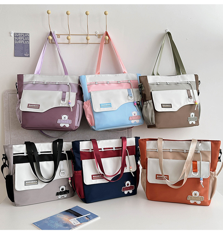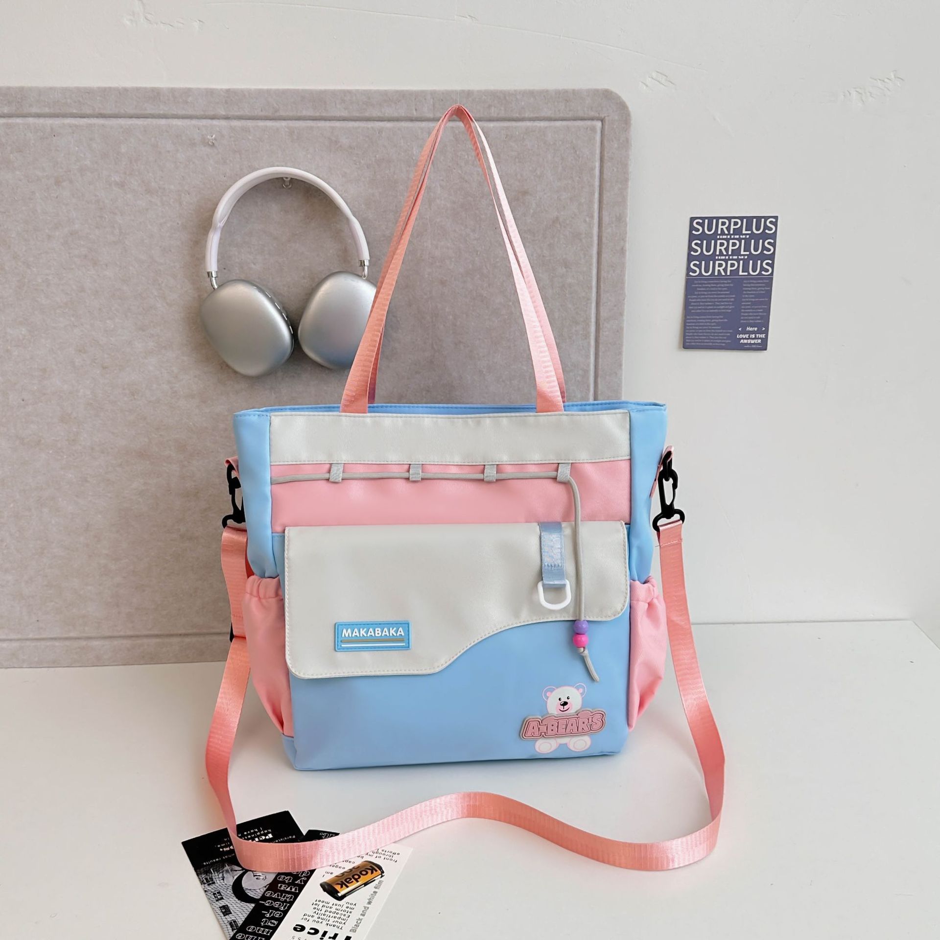 대비 색상 대용량 통근 크로스 백 일본식 레트로 인 소녀 토트 백 학생 튜터링 숄더 백스토어 가기