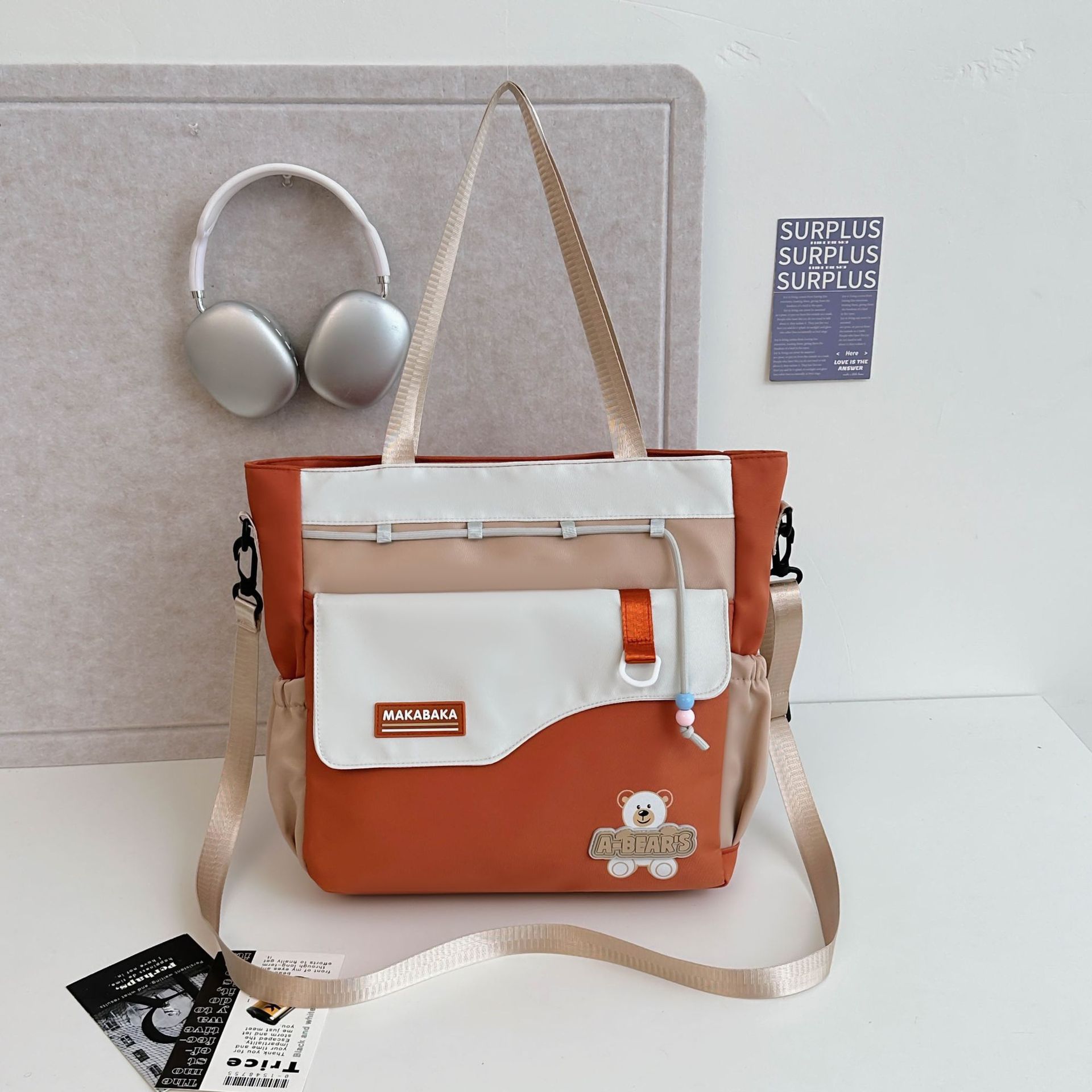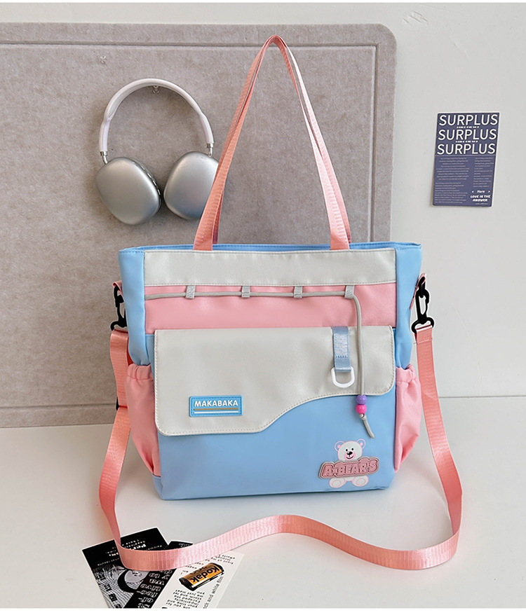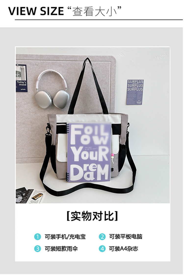 대비 색상 대용량 통근 크로스 백 일본식 레트로 인 소녀 토트 백 학생 튜터링 숄더 백