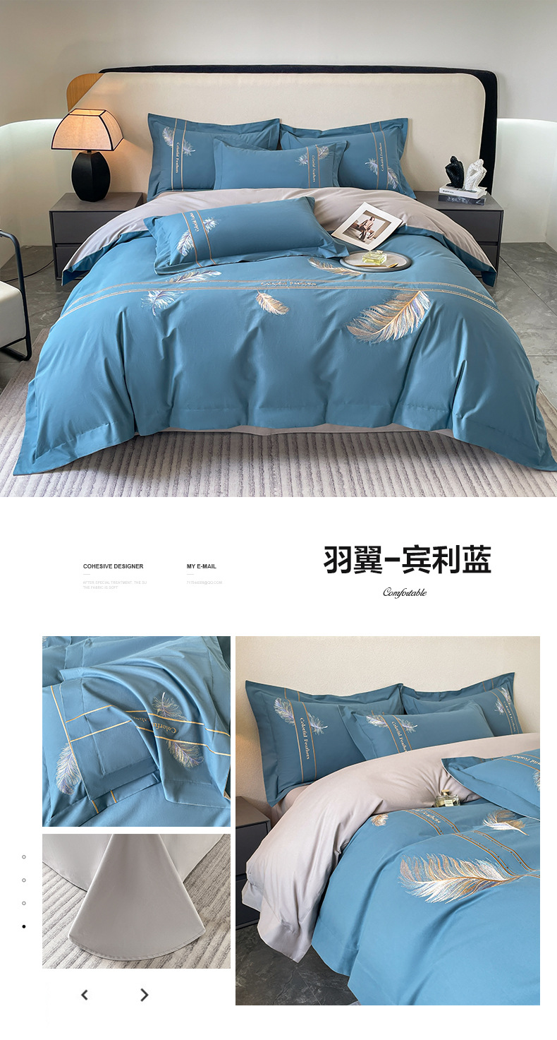 새로운 중국 자수 50 긴 스테이플 코튼 침대 4 피스 세트 코튼 스킨 친화적 인 벗은 슬리핑 침대 시트 퀼트 커버 3 피스 세트스토어 가기