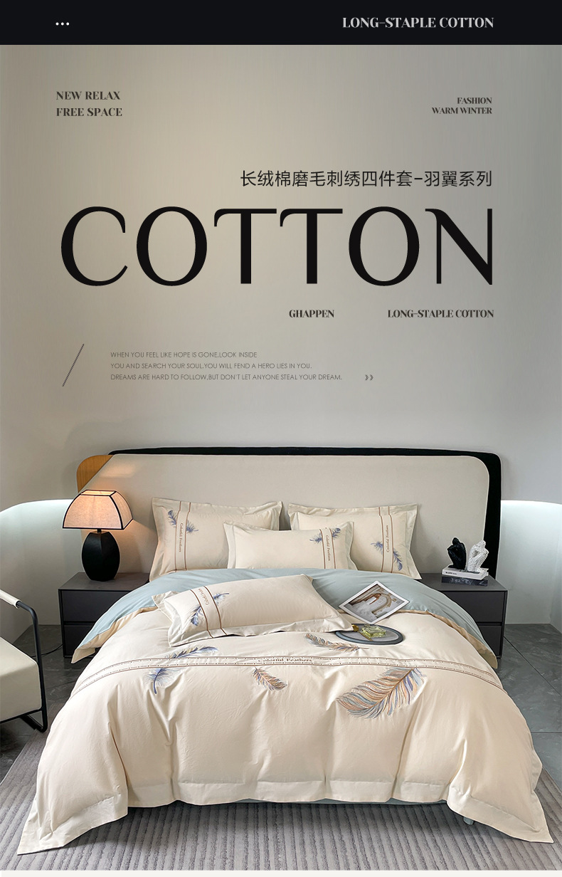 새로운 중국 자수 50 긴 스테이플 코튼 침대 4 피스 세트 코튼 스킨 친화적 인 벗은 슬리핑 침대 시트 퀼트 커버 3 피스 세트