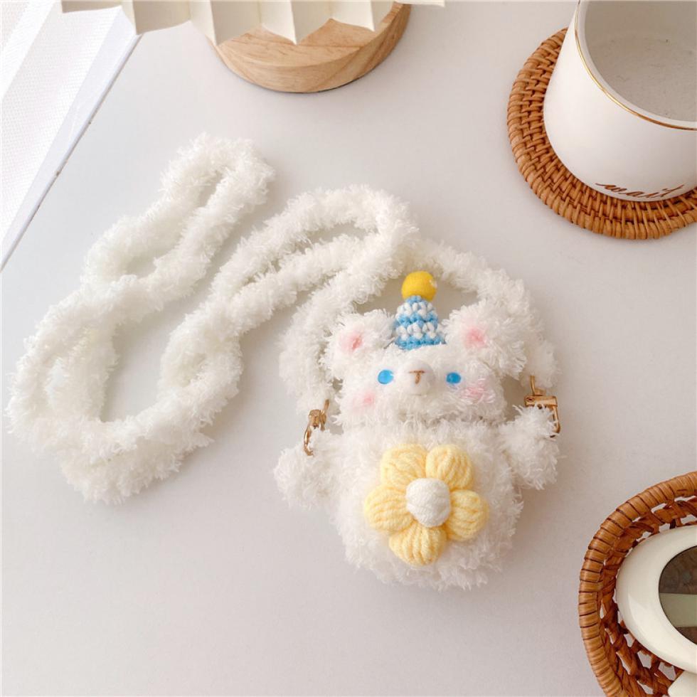 봉제 프로 벨벳 모피 방진 귀여운 애완 동물 스티커 AirPods 트렌디 백에 적합한 곰 노란 꽃스토어 가기