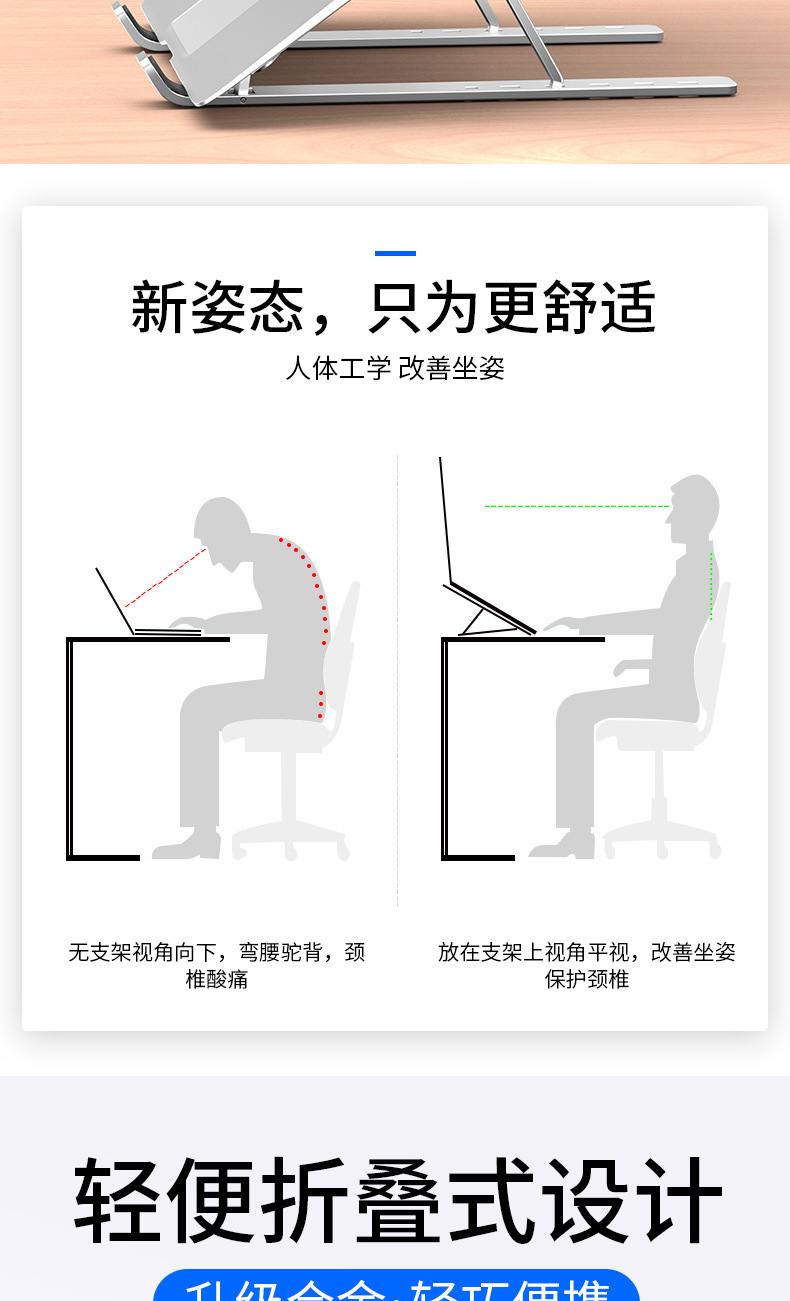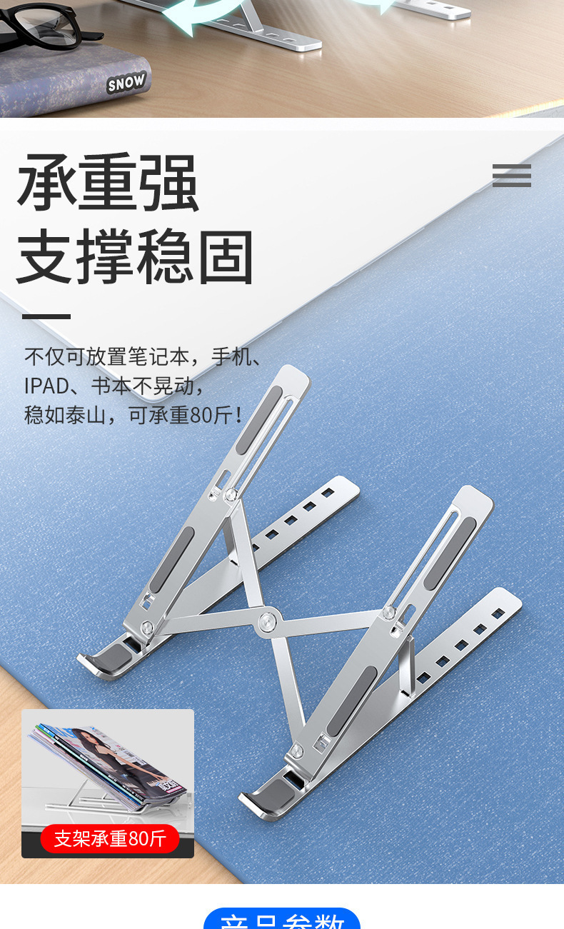 알루미늄 합금 노트북 데스크탑 평면 접이식 리프팅 휴대용 열 분산 7 금속 브래킷 맞춤 로고스토어 가기