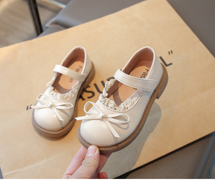 소녀 활 부드러운 밑창 공주 신발 2025 봄 새로운 소녀 패션 레이스 가장자리 벨크로 작은 가죽 신발스토어 가기