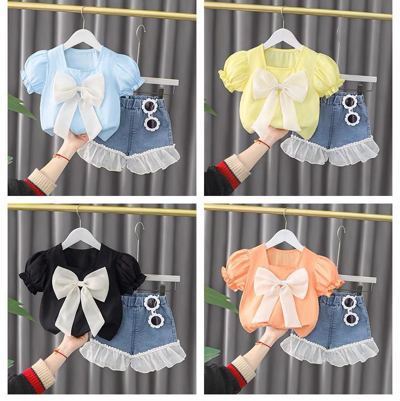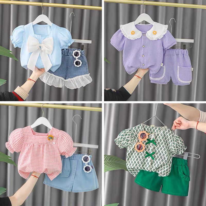 어린이 의류 반팔 세트 2025 여름 새 재킷 바지 투피스 소녀 세트 국경 간 공급 도매스토어 가기