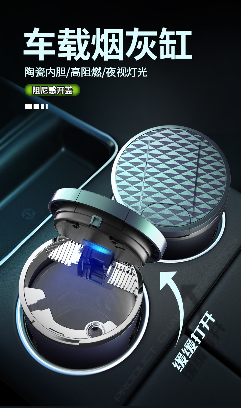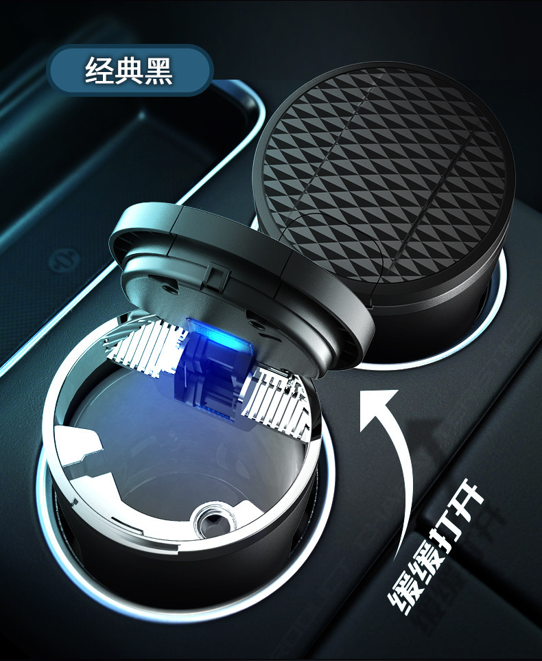 자동차 재떨이 고급 감지 자동 커버 오프닝 이중 목적 반 플라이 애쉬 연기 소화 아티팩트 블랙 기술 댐핑 스위치