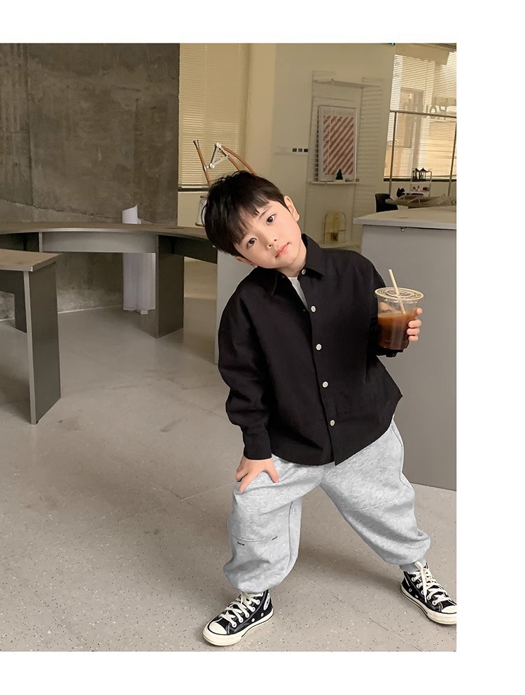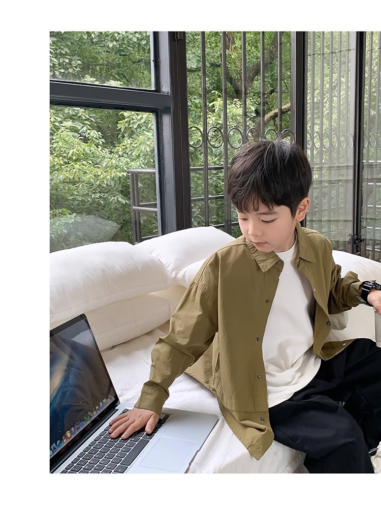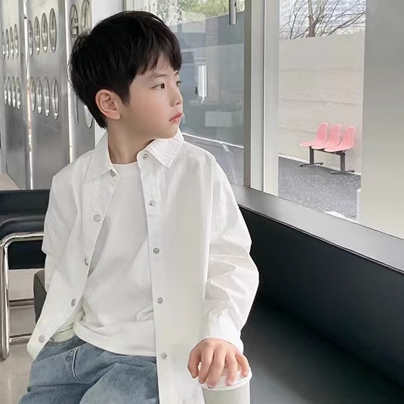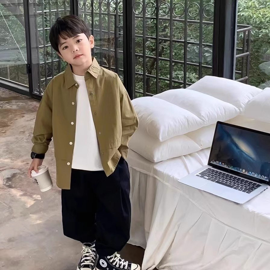 소년 셔츠 봄과 가을 최고 어린이 긴 소매 2024 어린이 의류 아기의 일본 스타일 디자인 느슨한 셔츠 트렌디
