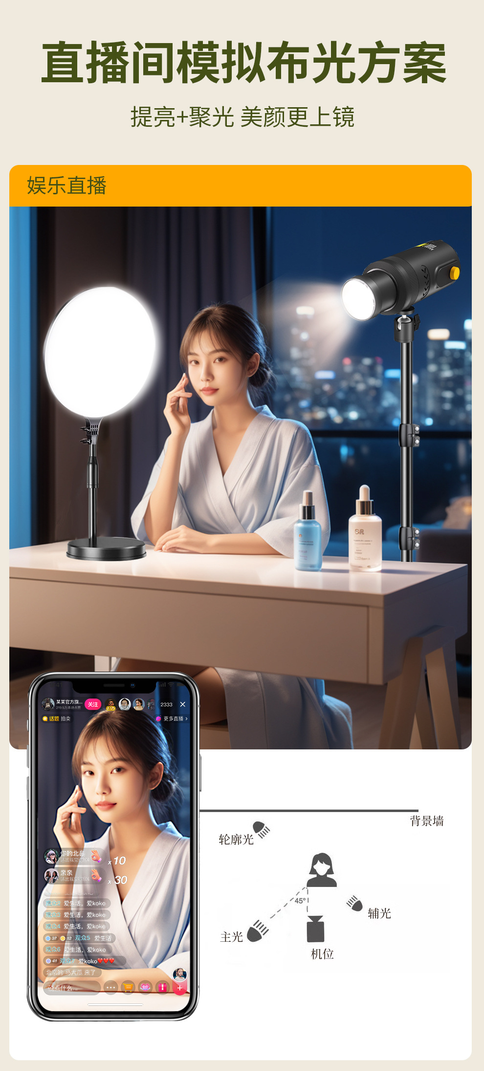 백라이트 헤어 램프 앵커 배경 라이브 방송 룸 특수 램프 채우기 빛 신 소녀 아름다움 분위기 스포트라이트