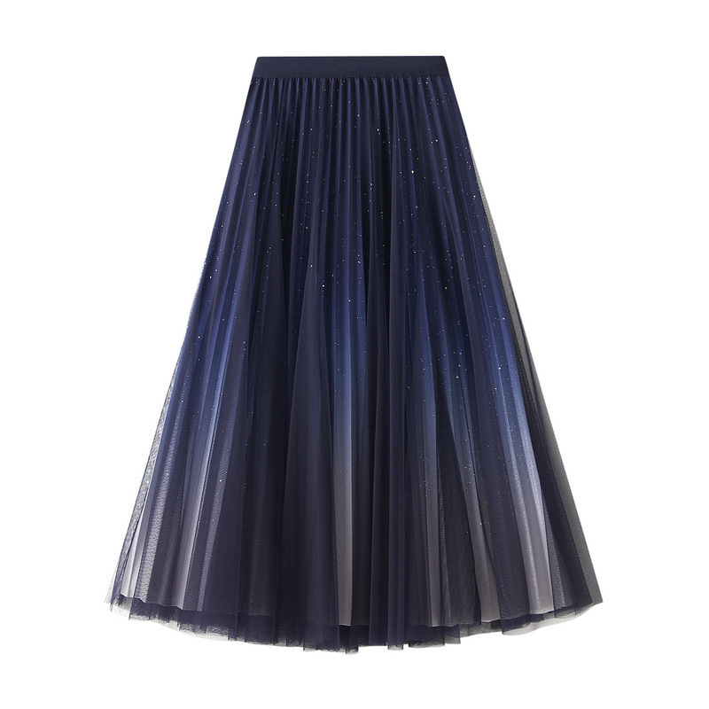 별이 빛나는 하늘 그라디언트 주름 치마 여성의 봄과 여름 중장 2025 새로운 대형 스윙 드랩 메쉬 A 라인 스커트