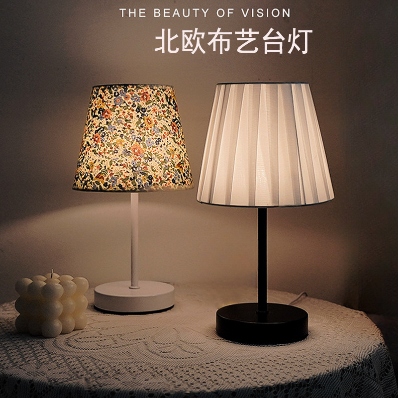 단단한 나무 직물 철 책상 램프 침실 침대 옆 램프 연구 기숙사 led 밤 빛 창조적 인 분위기 램프 장식