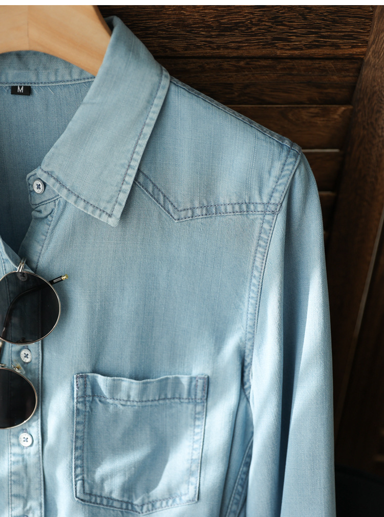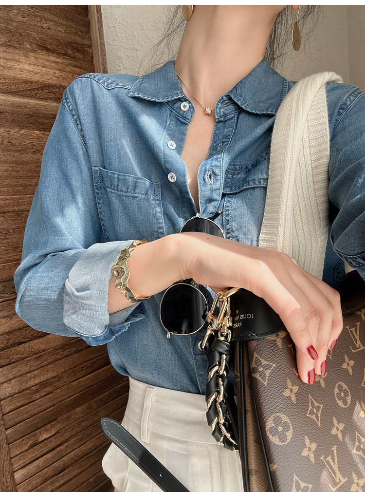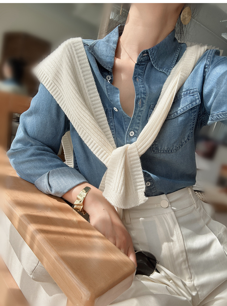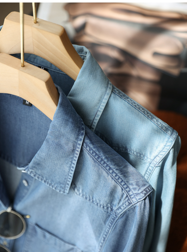 深蓝+浅蓝,复古港风萬能佰搭牛仔衬衫