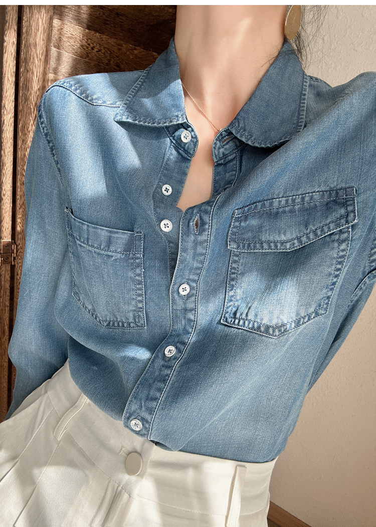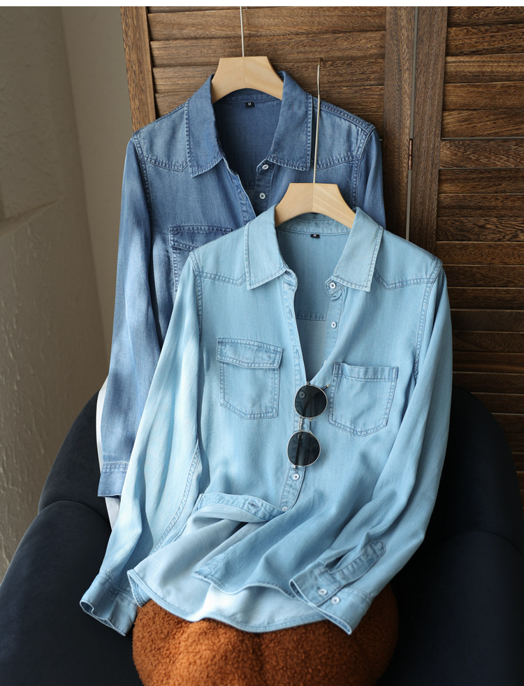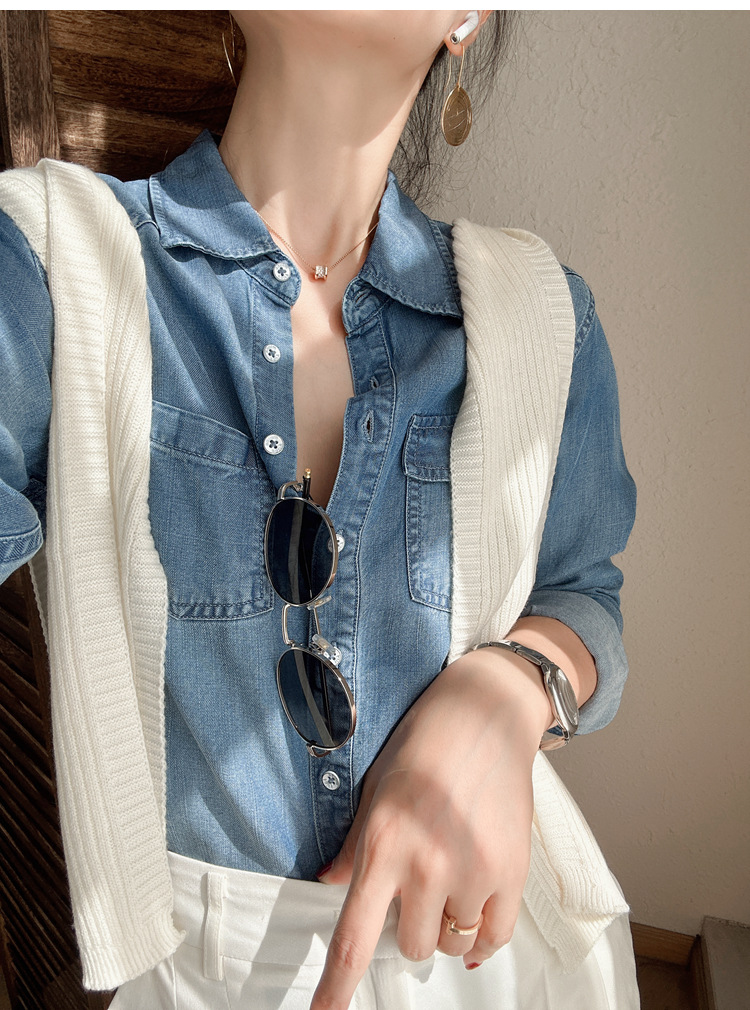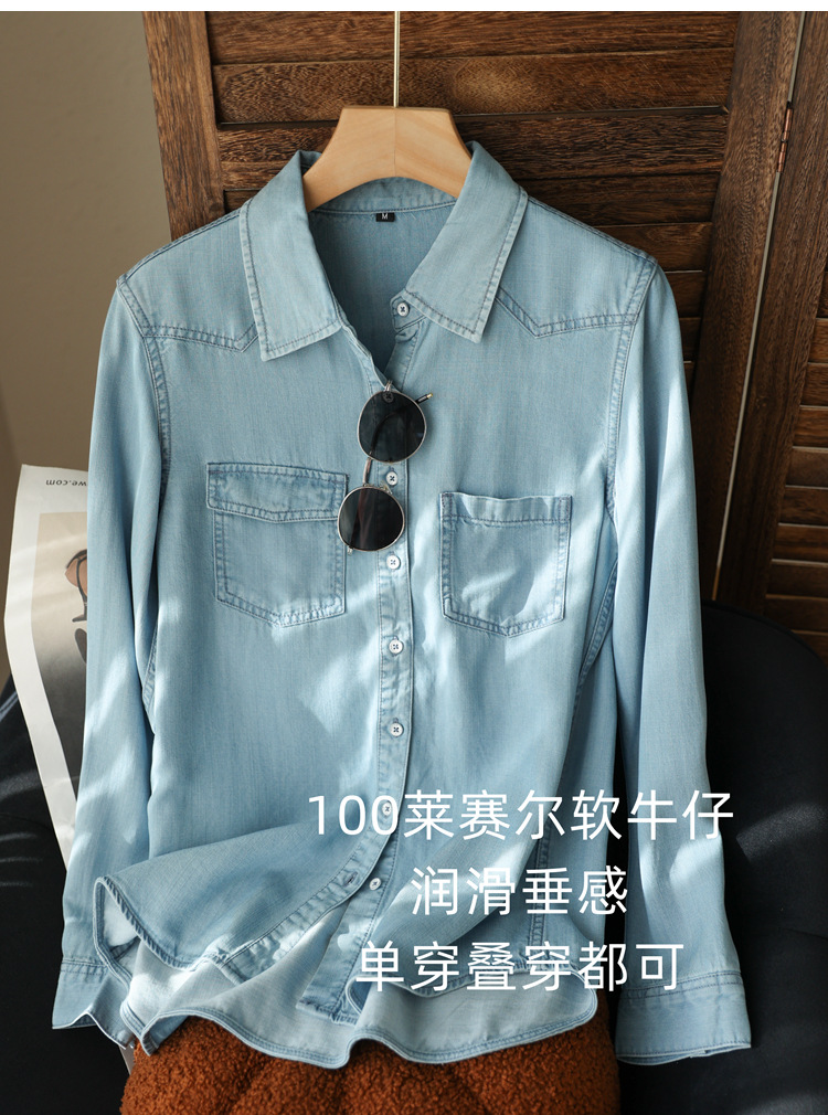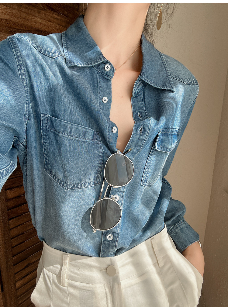 深蓝+浅蓝,复古港风萬能佰搭牛仔衬衫