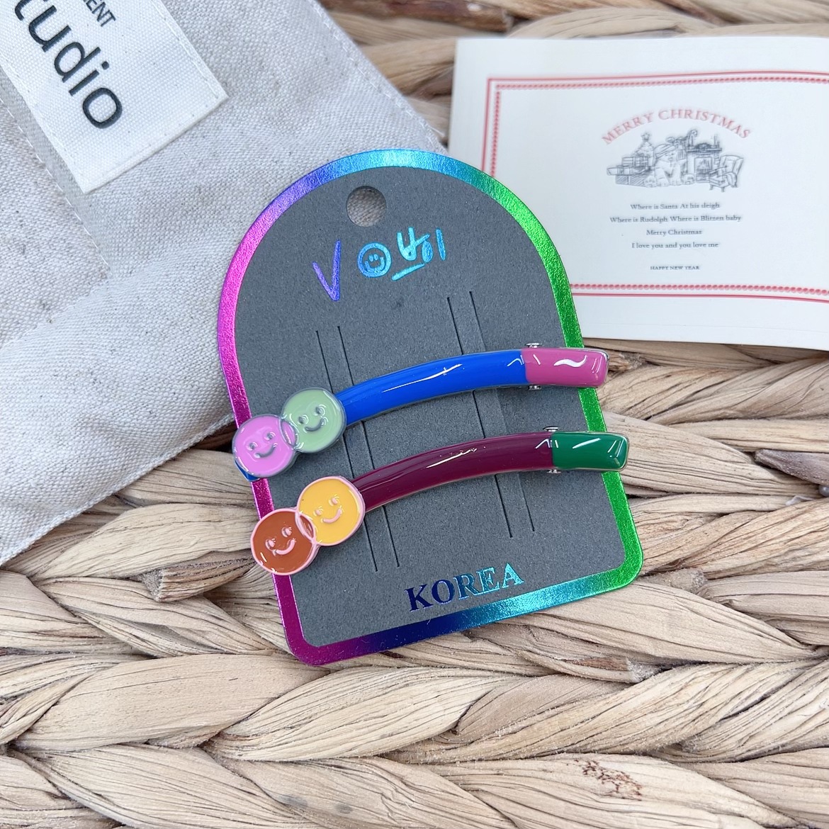 한국 스타일 새로운 패션 화려한 오일 드롭 스마일리 활 편지 헤어핀 여성을위한 달콤한 하이 센스 사이드 덕빌 클립스토어 가기