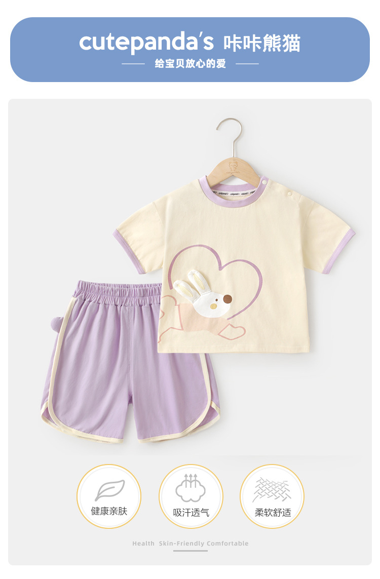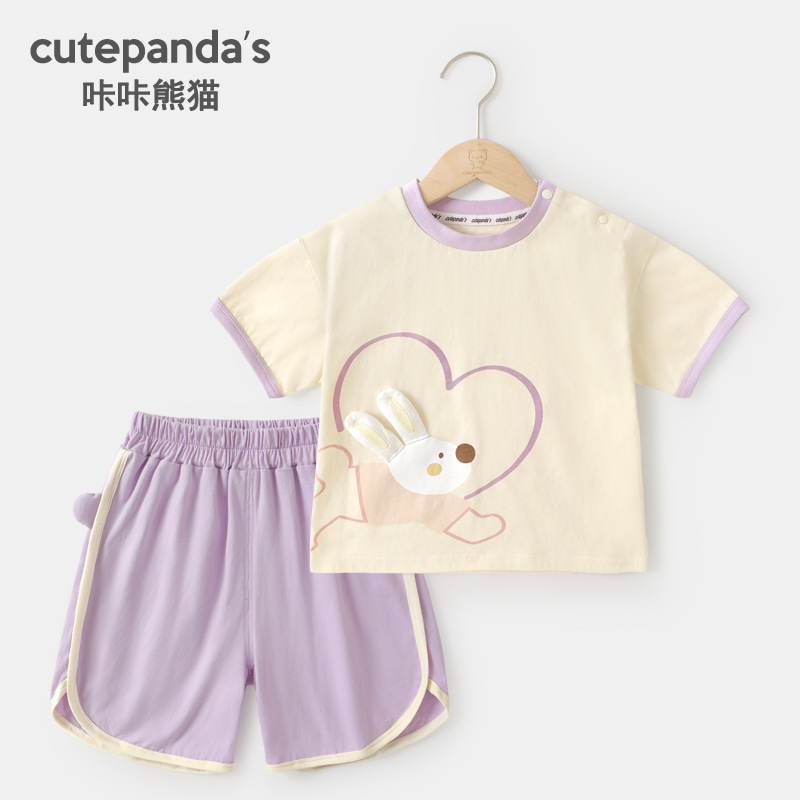 카카 팬더 소년 세트 소녀 여름 어린이 아기 여름 반팔 티셔츠 반바지 아기 투피스 유행 세트