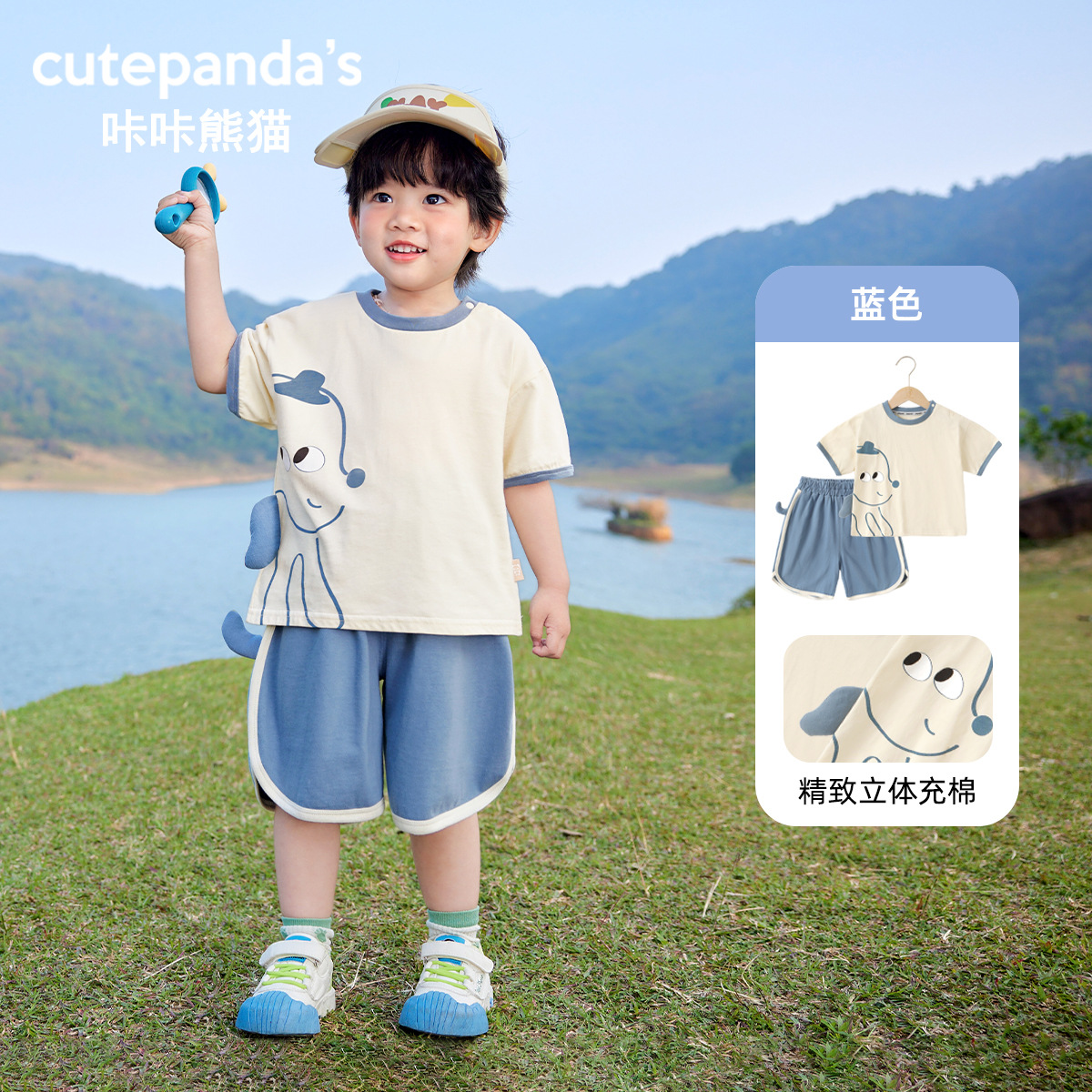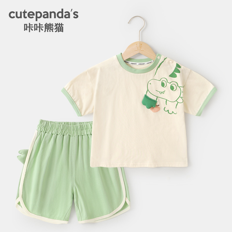 카카 팬더 소년 세트 소녀 여름 어린이 아기 여름 반팔 티셔츠 반바지 아기 투피스 유행 세트스토어 가기