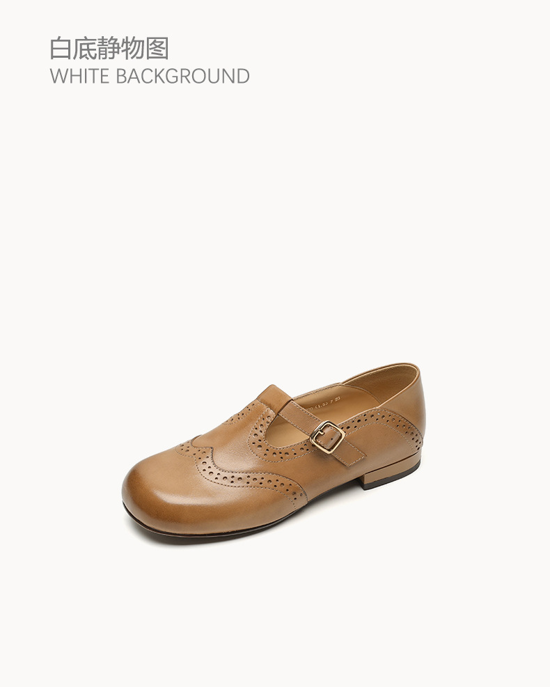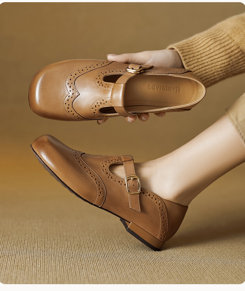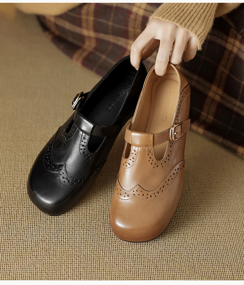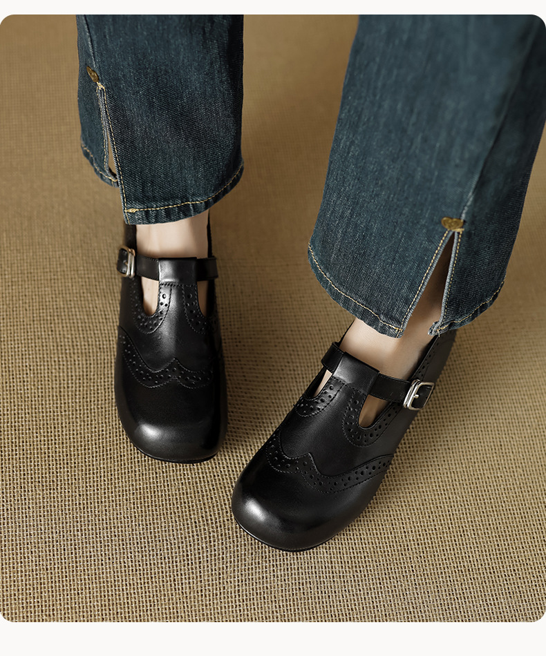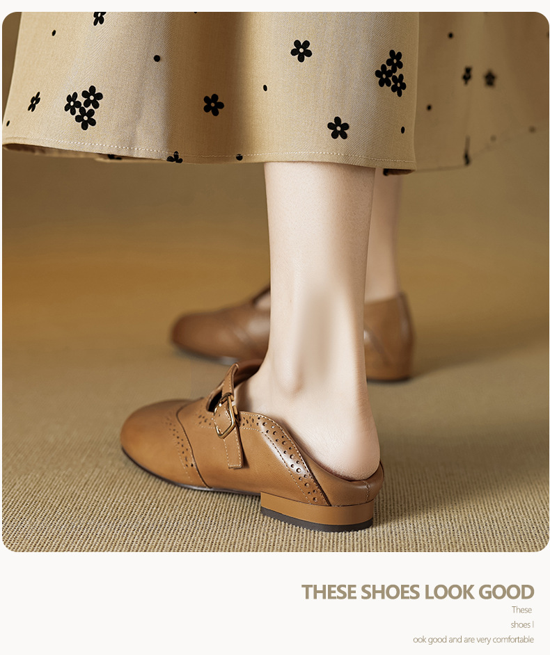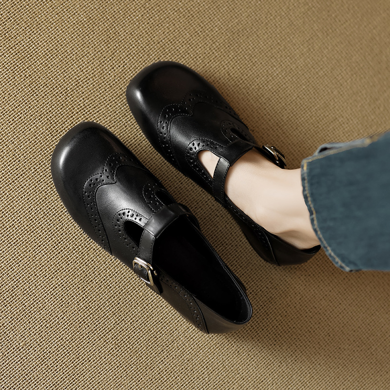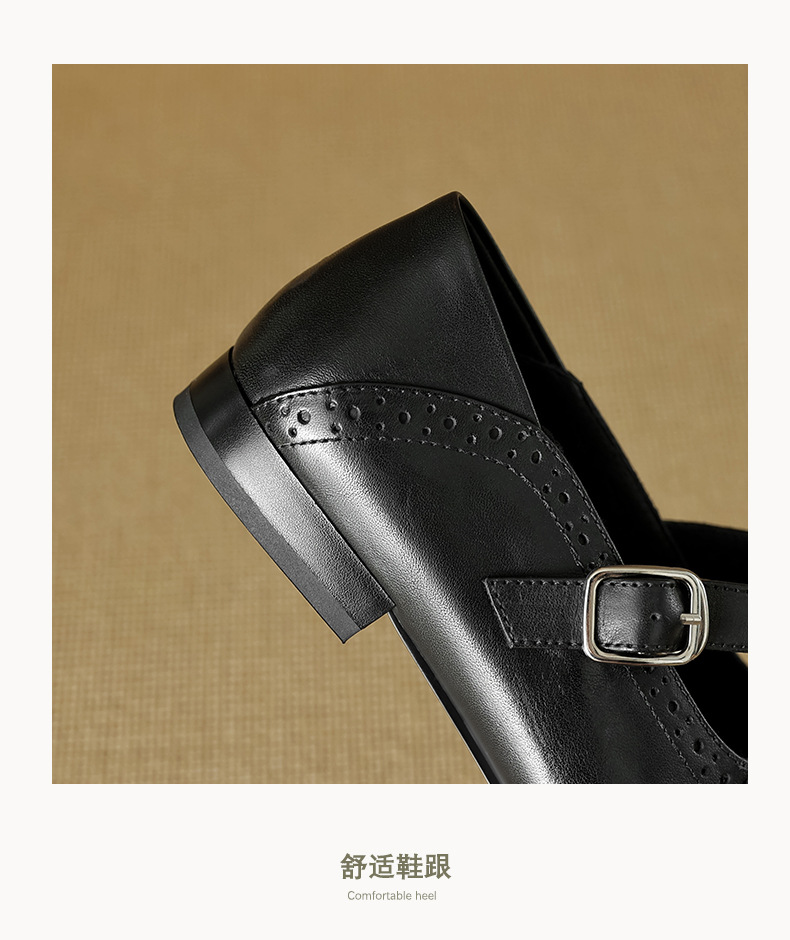 정품 가죽 빈티지 메리 제인과 함께 T 자형 가죽 신발 조각 된 로우 힐 이른 봄 새로운 예술적 라운드 발가락 플랫 싱글 레이어 신발스토어 가기