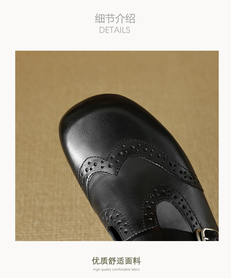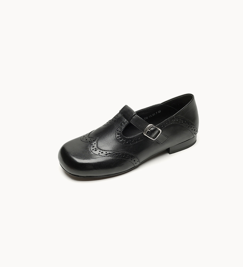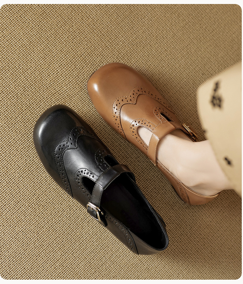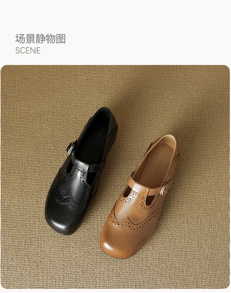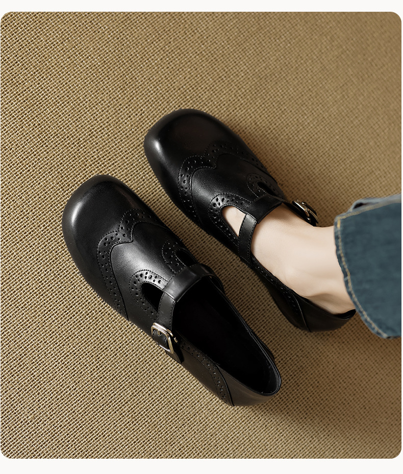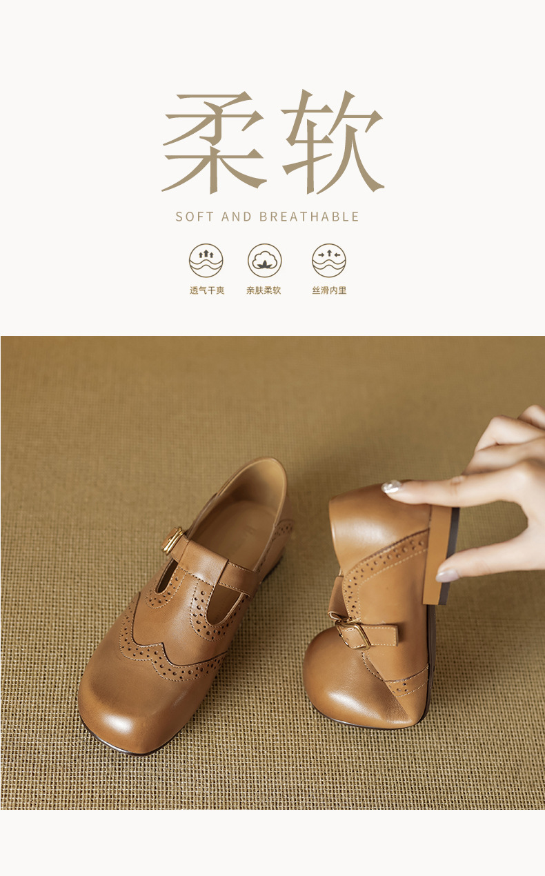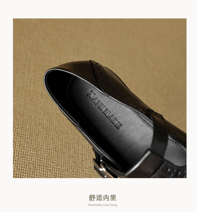 정품 가죽 빈티지 메리 제인과 함께 T 자형 가죽 신발 조각 된 로우 힐 이른 봄 새로운 예술적 라운드 발가락 플랫 싱글 레이어 신발스토어 가기