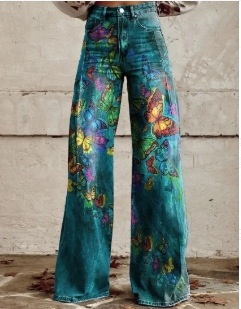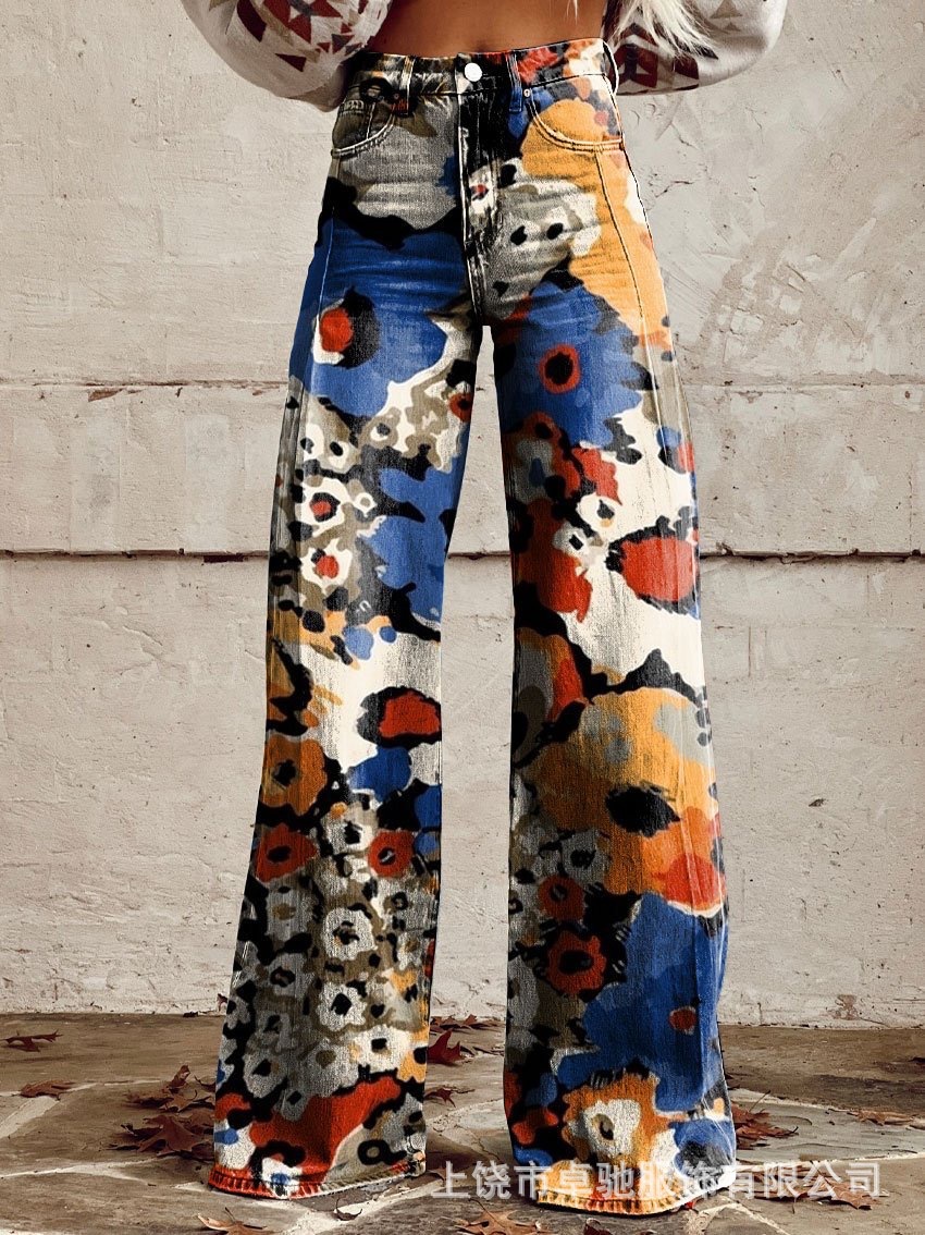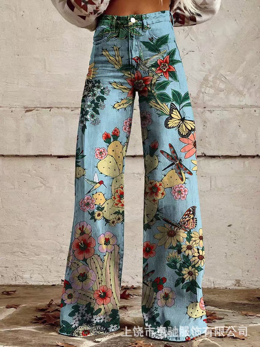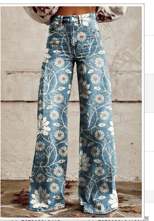 독립 스테이션 Xiyin 새우 피부 2024 새로운 3D 열 전달 플레어 팬츠 시뮬레이션 데님 바지 느슨한 바지스토어 가기