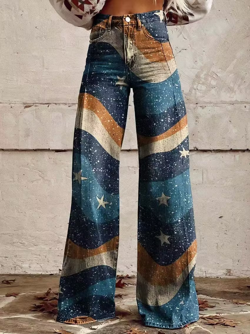 독립 스테이션 Xiyin 새우 피부 2024 새로운 3D 열 전달 플레어 팬츠 시뮬레이션 데님 바지 느슨한 바지