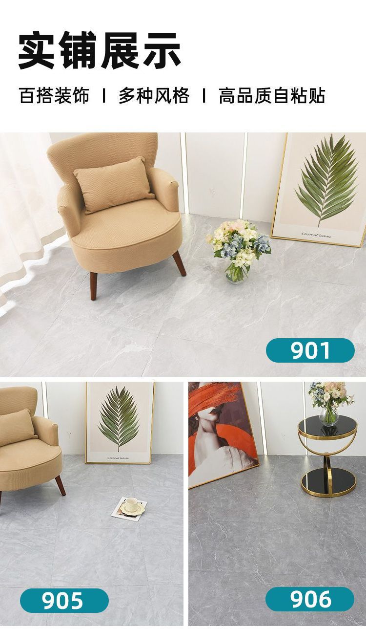 PVC 바닥재 자체 접착식 바닥재 두꺼운 바닥 가죽 주방 임대용 바닥재 가정용 바닥재 공장 해외 판매스토어 가기