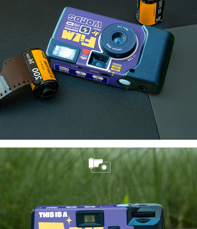 새로운 "FILMWORDS" 큰 눈 바보 기계 복고풍 스포츠 일회용 필름 카메라 27 색스토어 가기