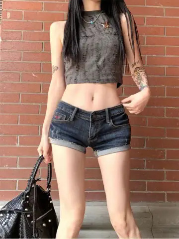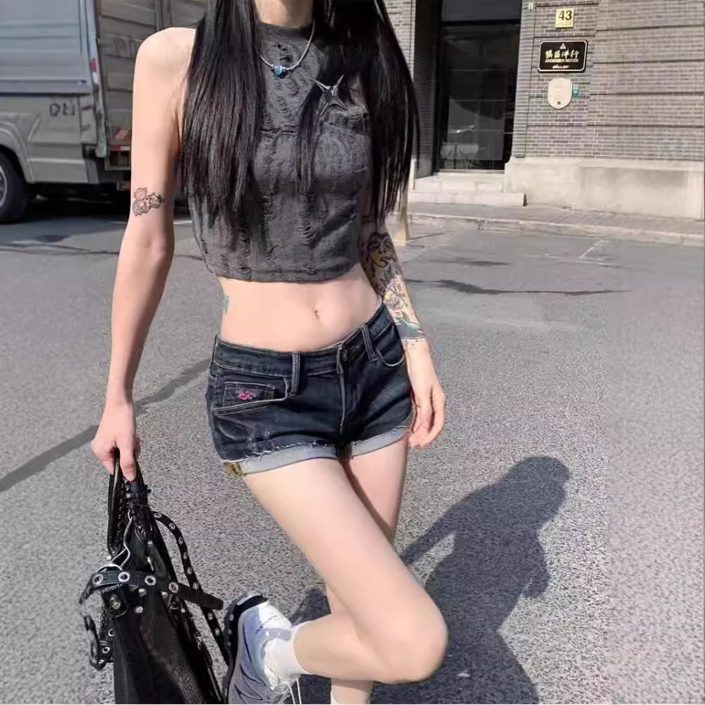 빈티지 달콤한 스파이스 소녀 데님 반바지 여성 여름 낮은 허리 슬리밍 컬 바지 작은 미국 엉덩이 핫 바지스토어 가기