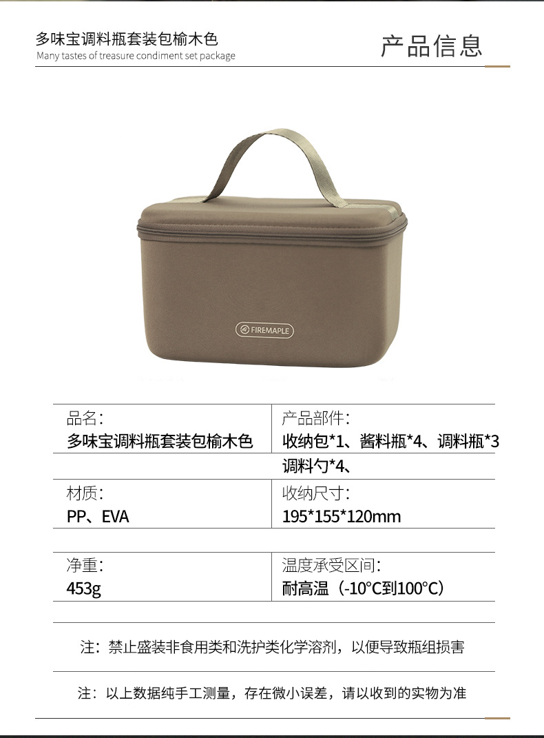 Huofeng Duweibao 조미료 병 세트 가방 솔리드 컬러 야외 캠핑 피크닉 휴대용 바베큐 소스 보관 가방