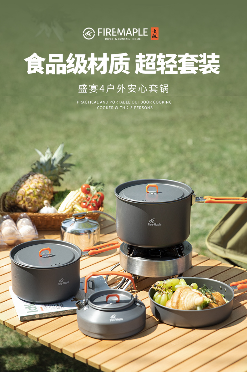 화재 단풍 축제 4 스페셜 에디션 야외 캠핑 4-5 인 세트 냄비 휴대용 접이식 조리기구 0.8L 주전자 접는 손잡이스토어 가기