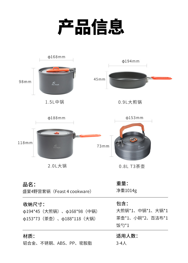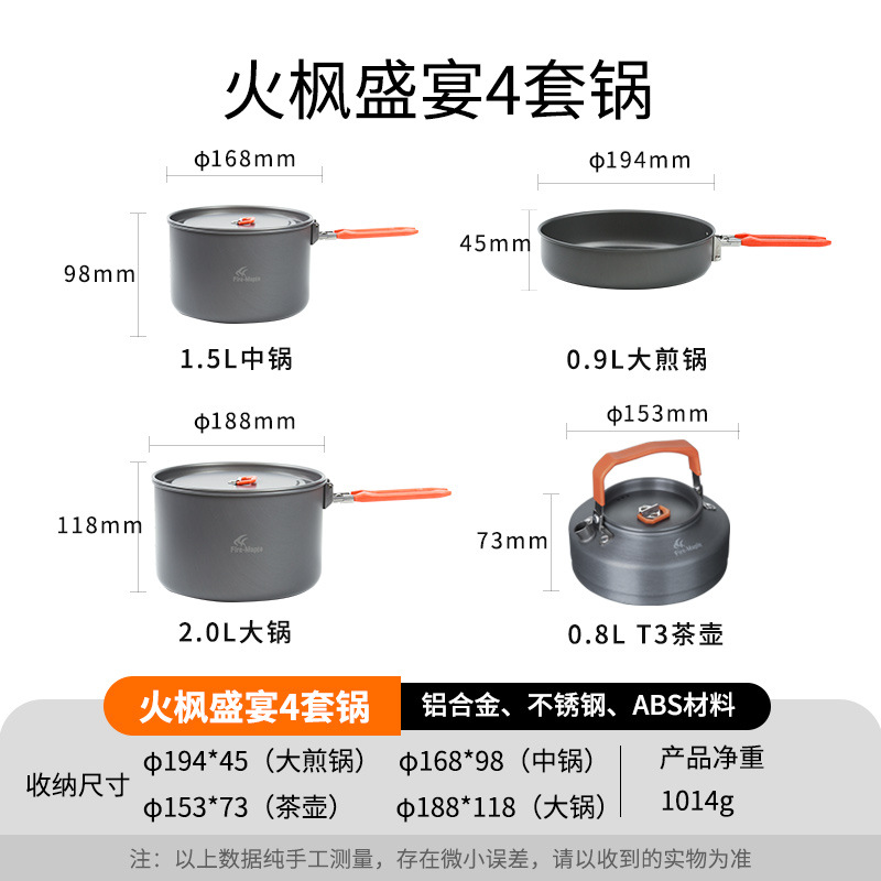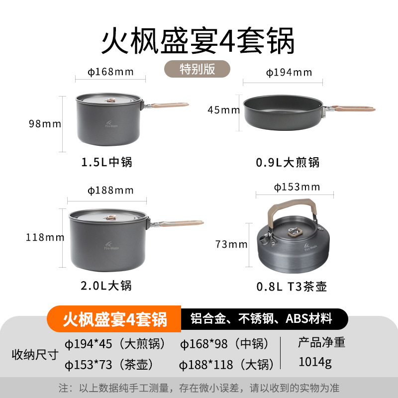 화재 단풍 축제 4 스페셜 에디션 야외 캠핑 4-5 인 세트 냄비 휴대용 접이식 조리기구 0.8L 주전자 접는 손잡이