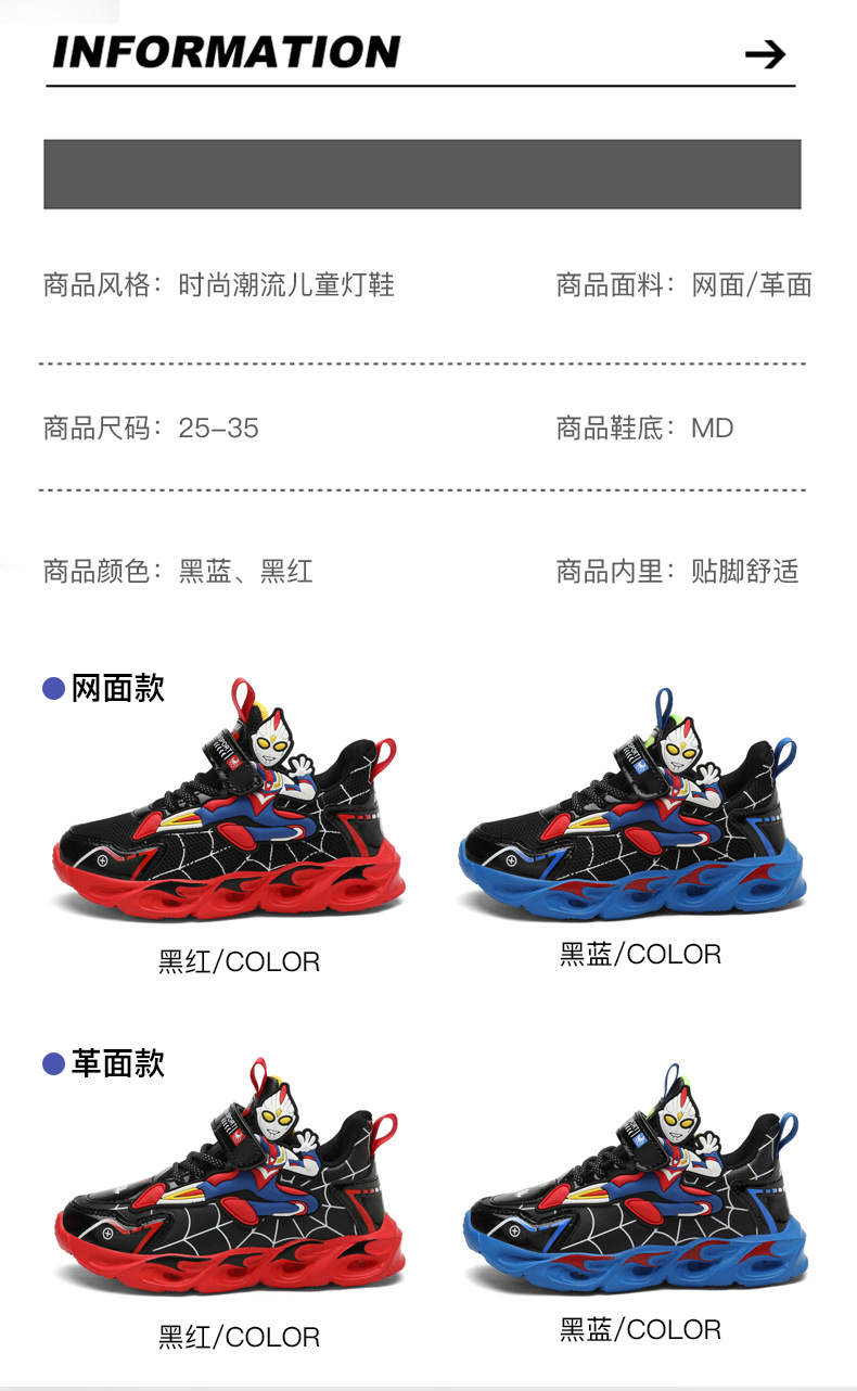 소년 신발 Altman 밝은 빛 신발 메시 통기성 2025 새로운 어린이 만화 운동화 빛나는 운동화 조수스토어 가기
