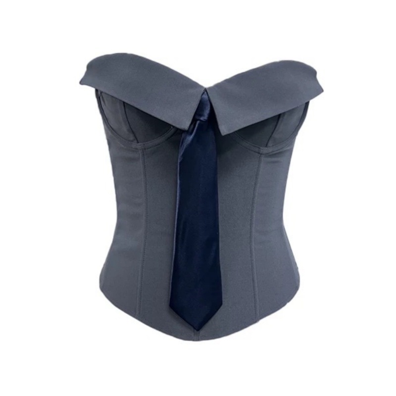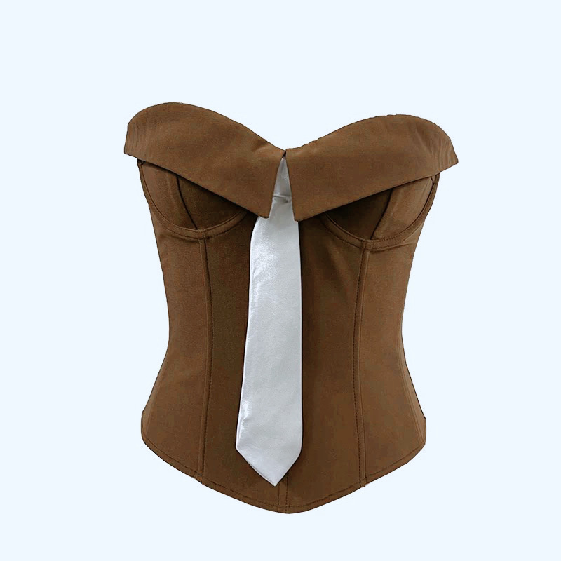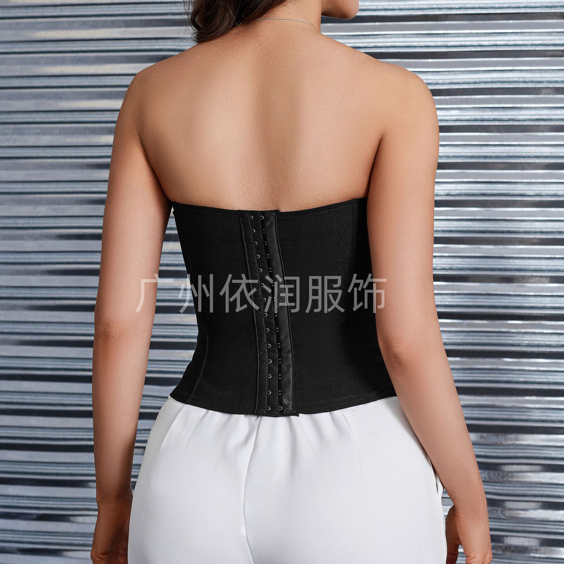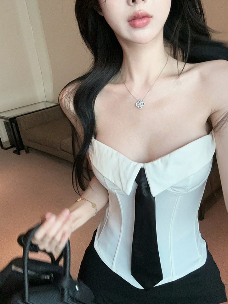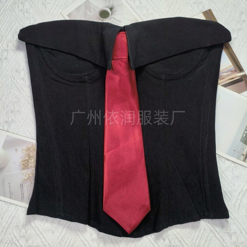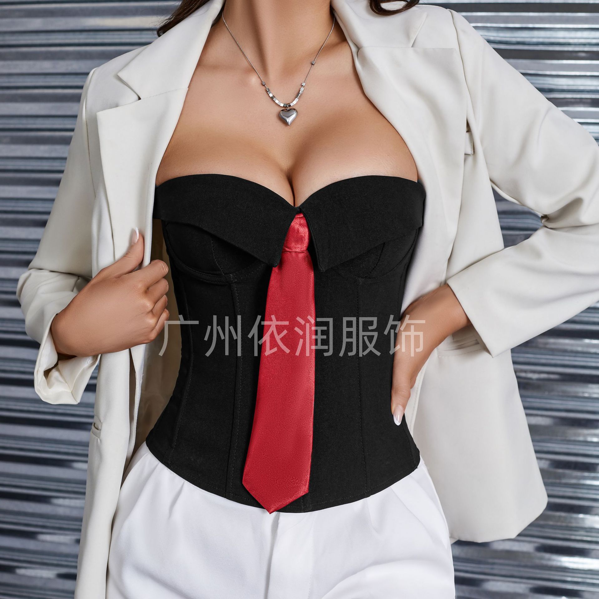 2025 새로운 거리 촬영 유럽과 미국의 뜨거운 소녀 넥타이 명암 순수한 욕망 강철 반지 생선 뼈 감싸는 가슴없는 작은 조끼 탑