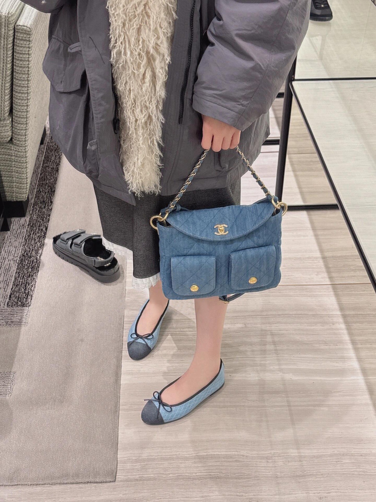 양가죽 버전 ~ 아름다운 정품 가죽 데님 발레 신발 여성 활 부드러운 바닥 메리 제인 싱글 레이어 신발 플랫 신발스토어 가기