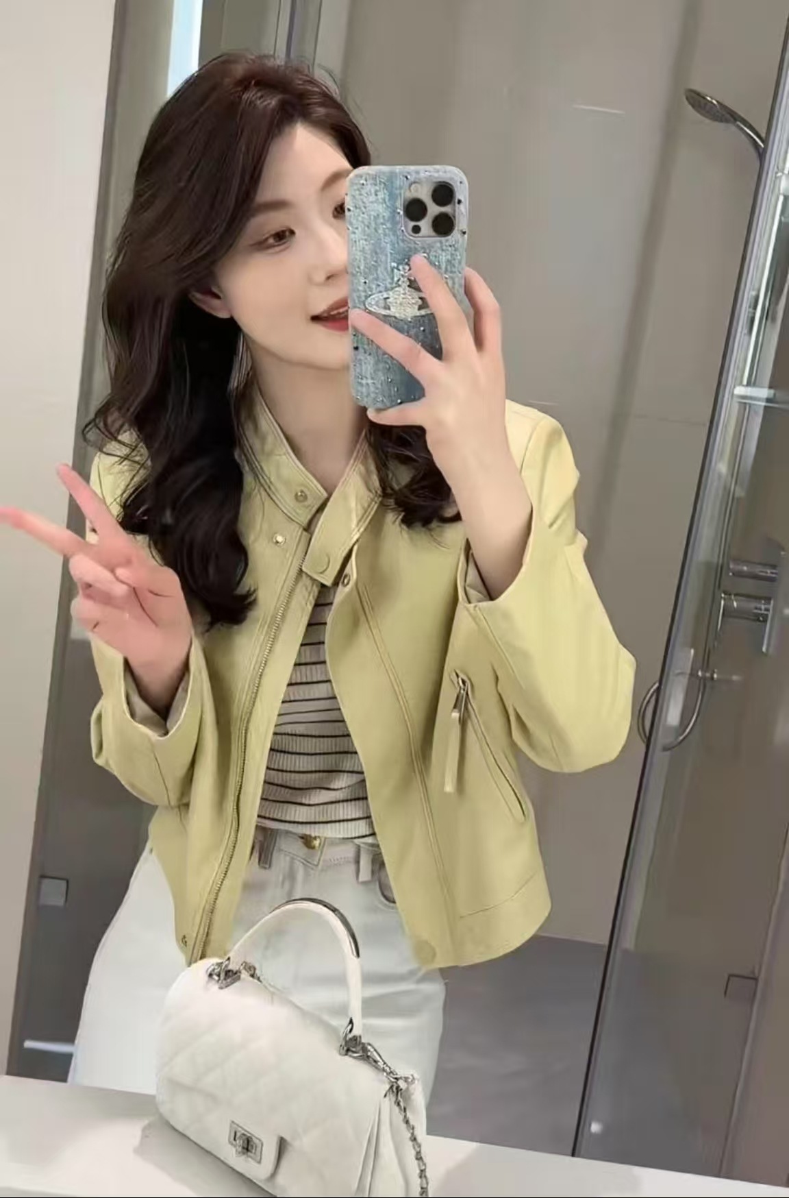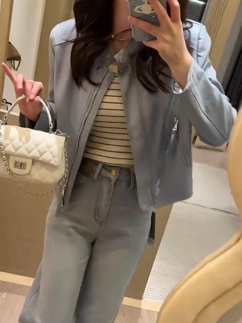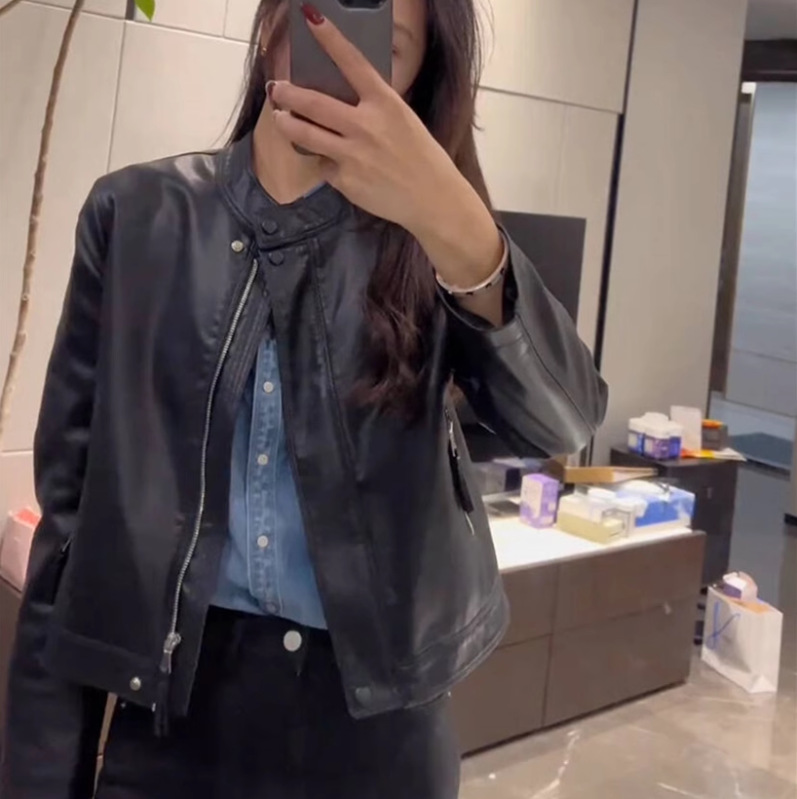 가죽 자켓 여성용 짧은 2025 봄 새로운 하이 엔드 우아한 캐주얼 가죽 자켓 수직 칼라스토어 가기