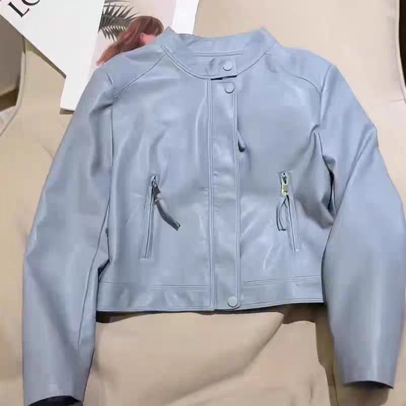 가죽 자켓 여성용 짧은 2025 봄 새로운 하이 엔드 우아한 캐주얼 가죽 자켓 수직 칼라