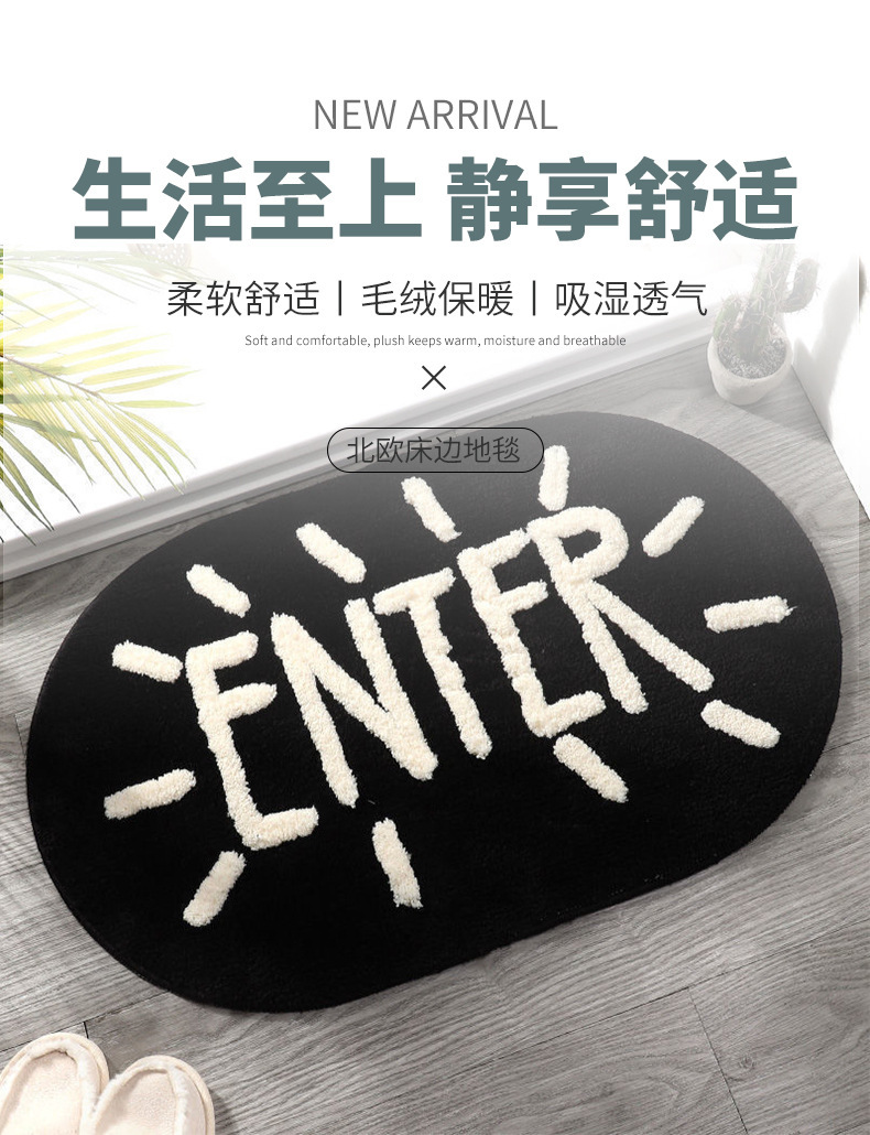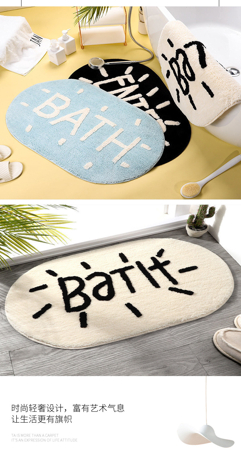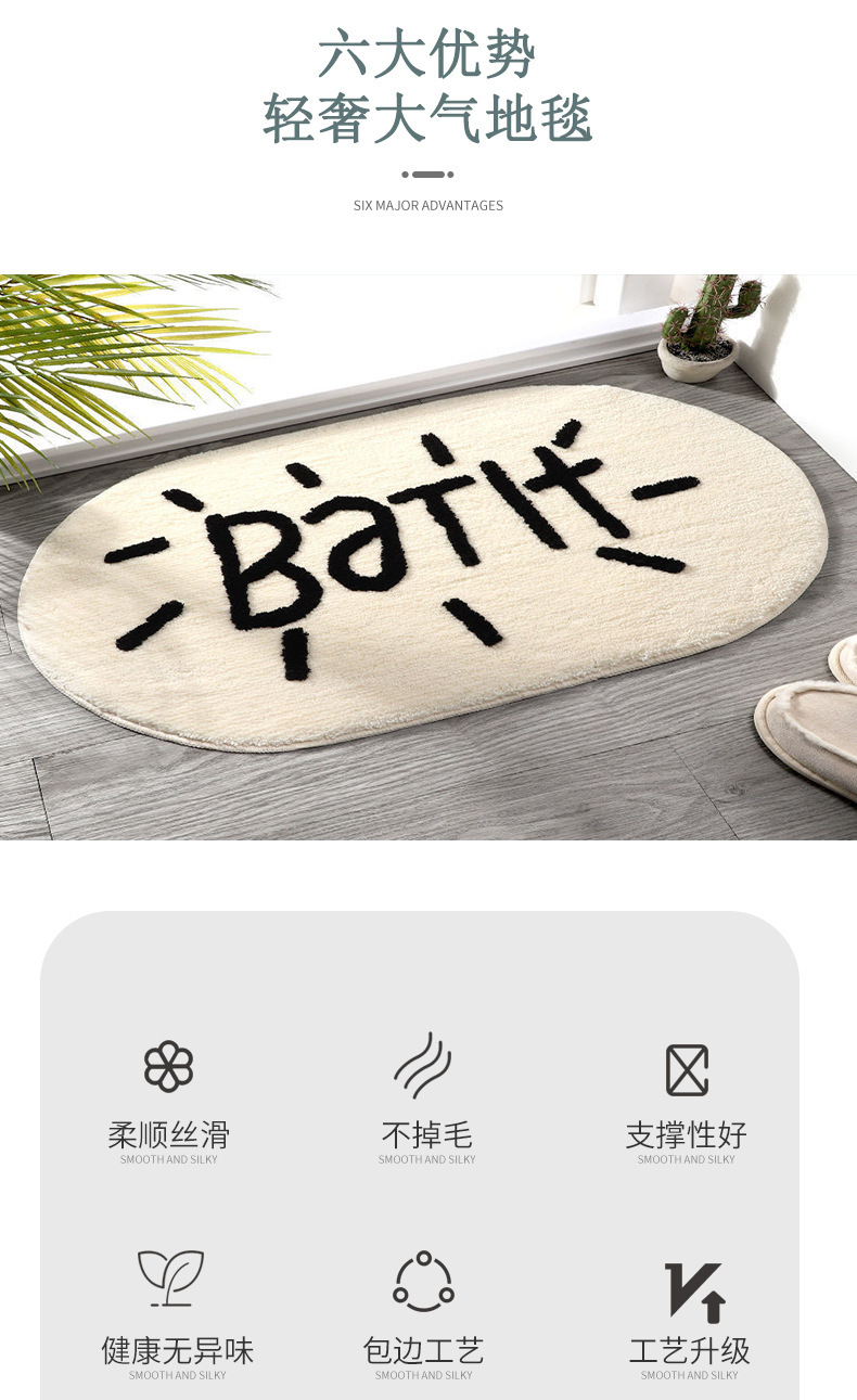 모조 캐시미어 카펫 가정용 흑백 편지 타원형 바닥 매트 욕실 화장실 문 미끄럼 방지 두꺼운 매트스토어 가기