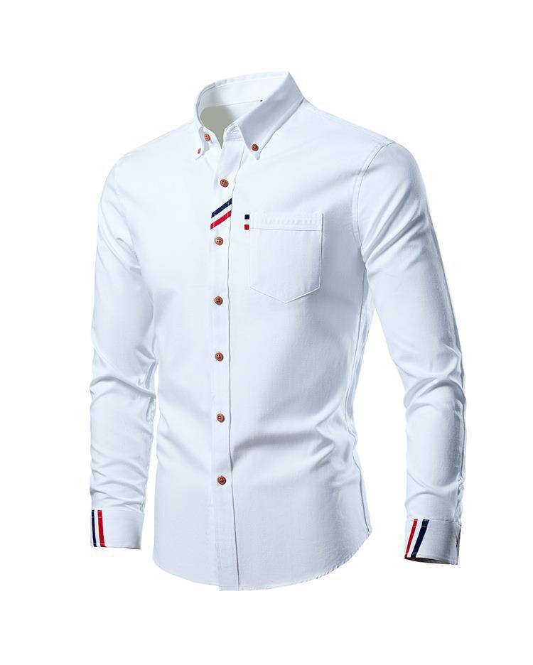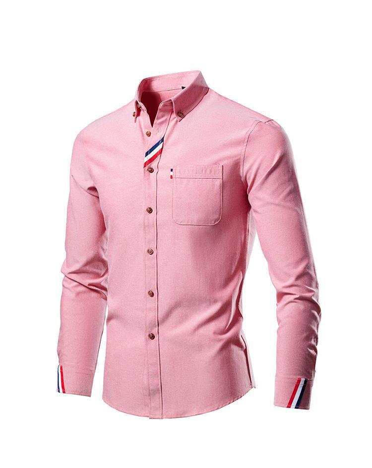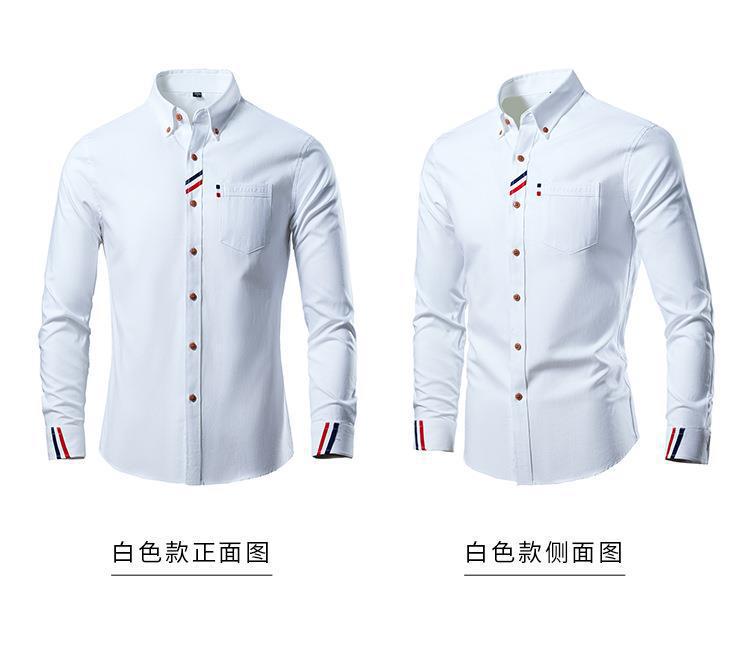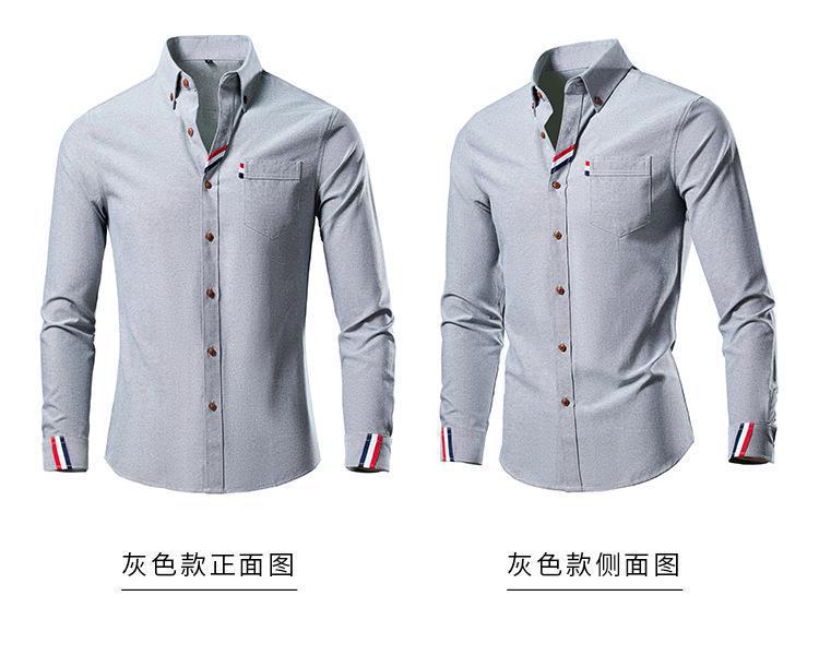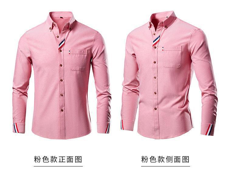 AliExpress 국경 간 대외 무역 유럽과 미국 패션 옥스포드 셔츠 남성 컬러 매칭 포켓 캐주얼 긴 소매 남성 셔츠