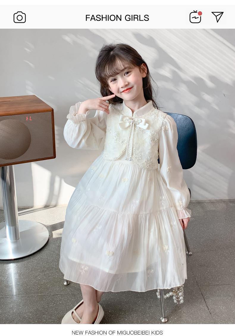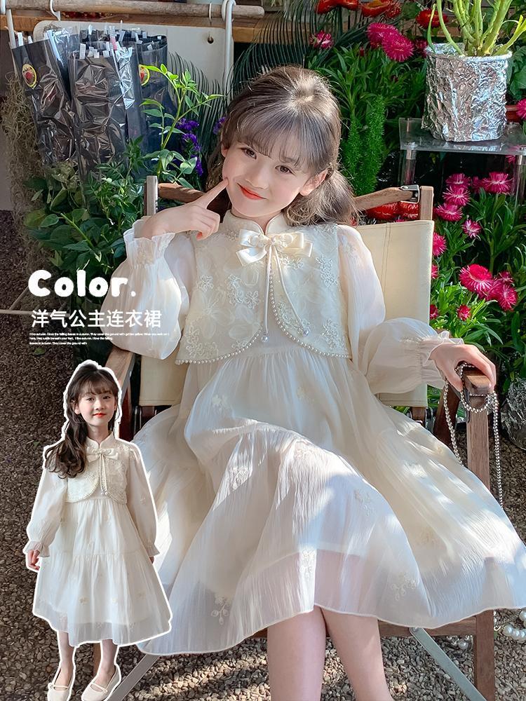 새로운 중국 스타일 소녀의 원피스 봄과 가을 2024 새로운 봄 요정 원피스 어린이 봄 긴 소매 공주 원피스스토어 가기